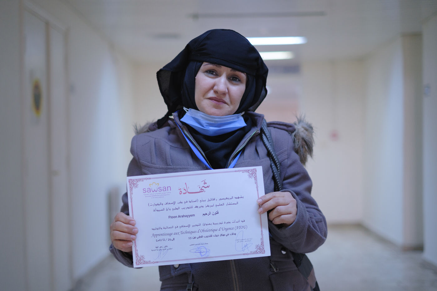 The techniques learned during this training will enable her to respond quickly to delicate situations through effective actions and save the lives of newborns and their mothers. In a healthcare system devastated by war for the past 10 years, the health needs in the country remain significant.