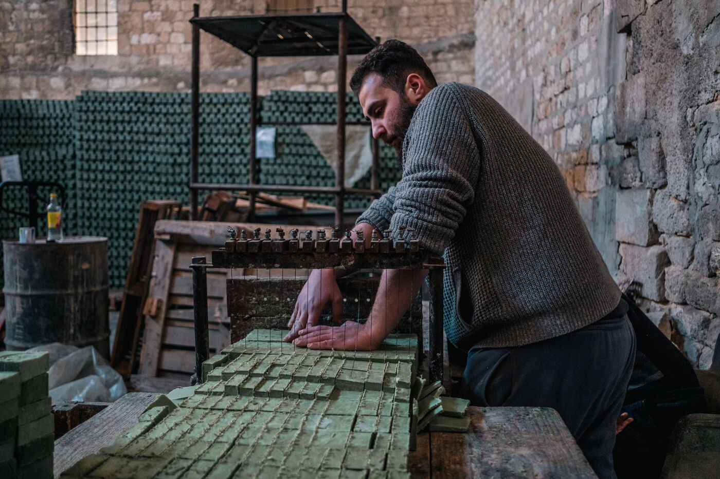 Dans la vieille ville d’Alep, au nord de la Syrie, les employés de la savonnerie Jebeili s’affairent à la cuisson du savon, sous l'œil aiguisé d’Hicham, le directeur de l’usine. Des usines comme la sienne, il n’y en a plus qu’une quinzaine, contre 120 avant le début de la guerre en 2011. “Ma famille fait du savon depuis au moins quatre générations, ce n’est pas un commerce, c’est avant tout un art, un amour inconditionnel du produit”, lance-t-il, les yeux rieurs.