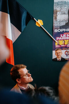 In Paris, Sophia Chikirou, a candidate for La France Insoumise, met her followers and activists as well as journalists at the bar L'Exode near Strasbourg-Saint-Denis.