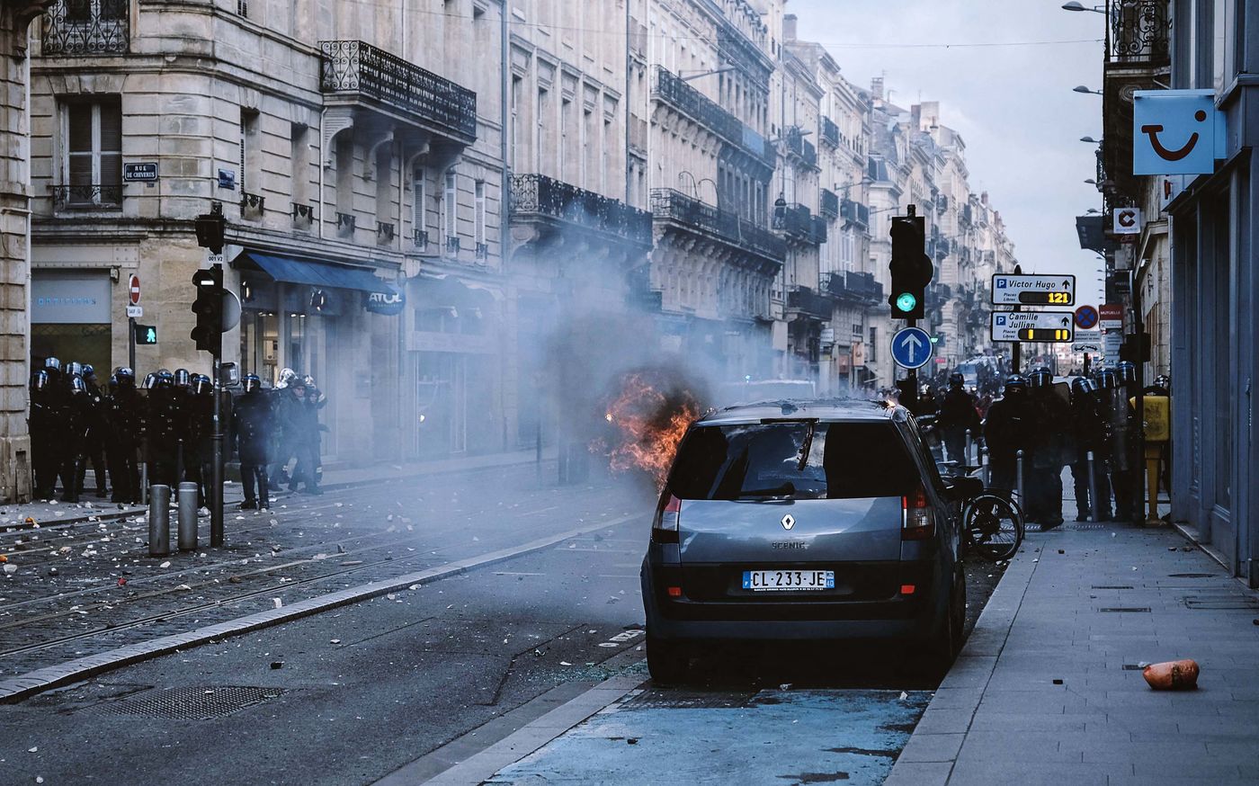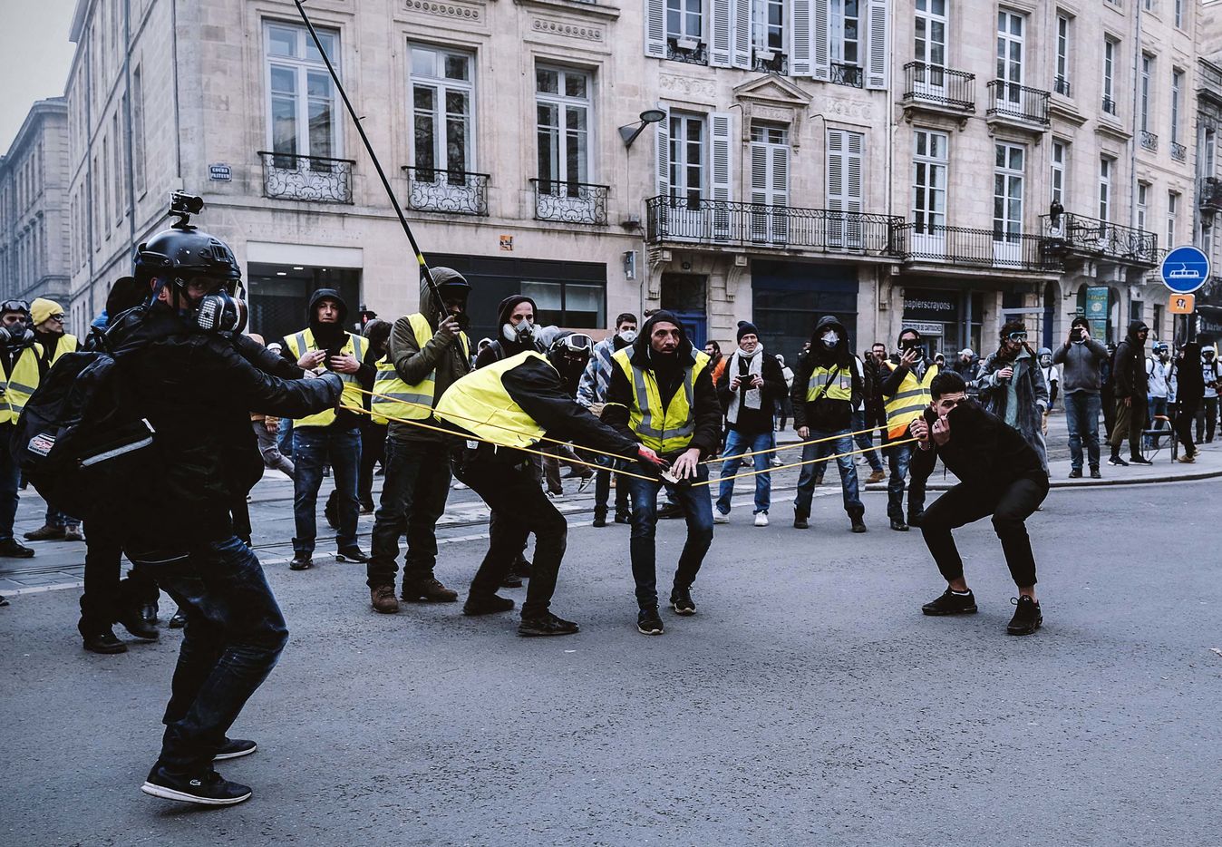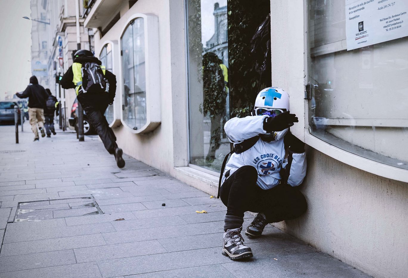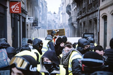 Douzième samedi de mobilisation des Gilets Jaunes à Bordeaux. Très tôt dans la journée, une atmosphère tendue est perceptible sur la place Pey Berland. De violents affrontements entre manifestants et forces de l'ordre éclatent aux alentours de 15h30. "On vous aura à l'usure" crie un manifestant des Gilets Jaunes. Ces derniers refusent de reculer face à l'assaut des CRS et divers projectiles commencent à fuser. Les forces de l'ordre répondent par des tirs de flash-balls et de bombes lacrymogènes. Les volontaires médicaux sont sollicités auprès de nombreux bléssés. Poussé vers la place de la Victoire, le rassemblement finit par être dissipé dans un nuage de fumée lacrymogène.