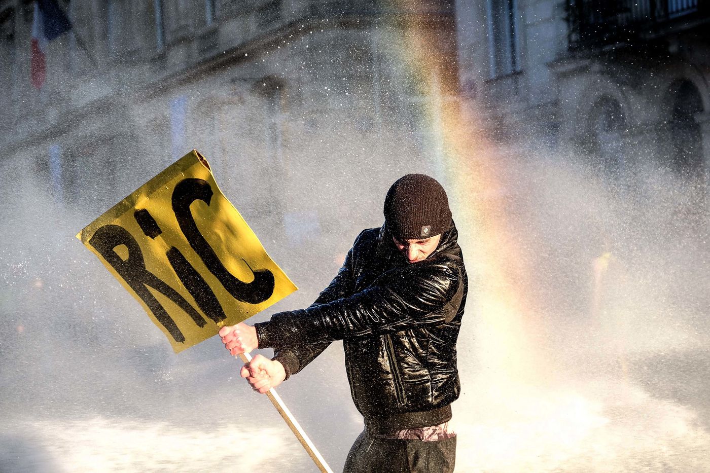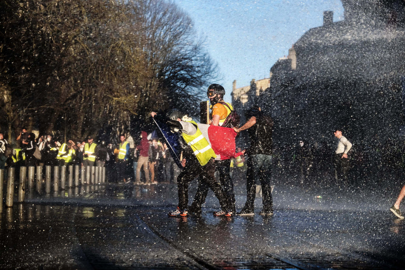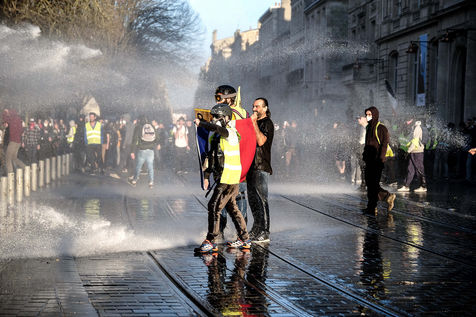A l'arrivé du cortège sur place Pey Berland, les hostilités entre Gilets Jaunes et forces de l'ordre ont commencé. Les canons à eaux ont très rapidement dissuadé les plus vaillants. Quelques minutes plus tard, le premier et dernier assaut de la police est lancé et disperse l'ensemble de la manifestation.