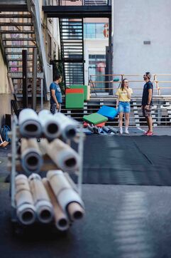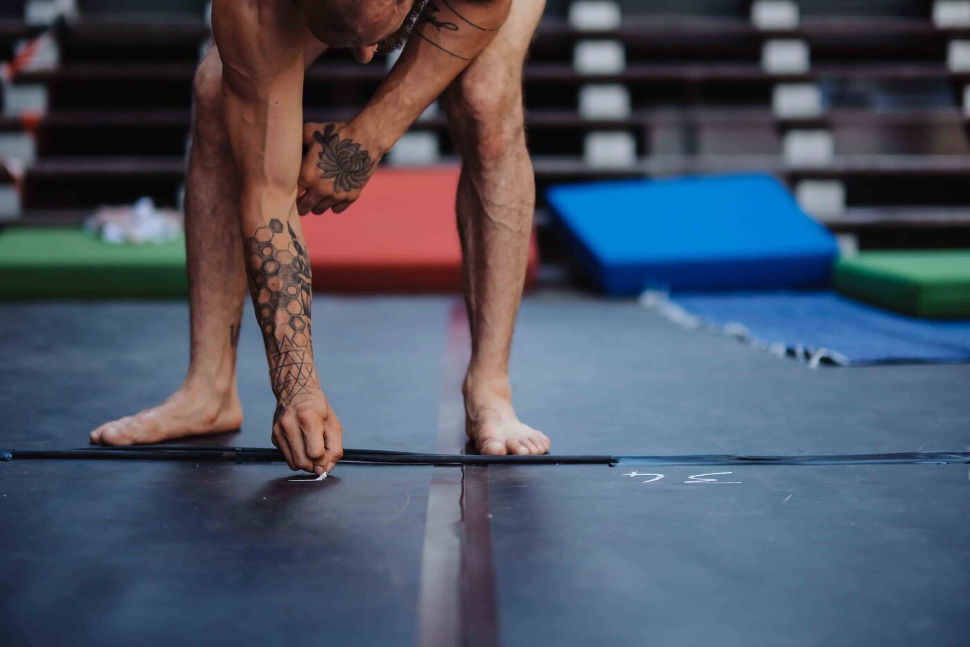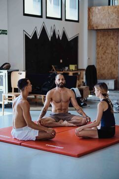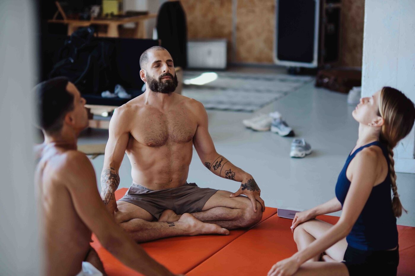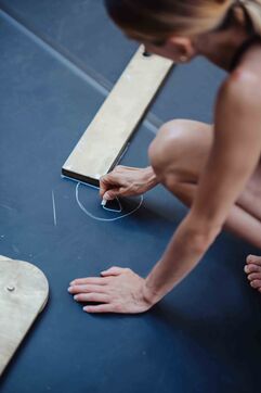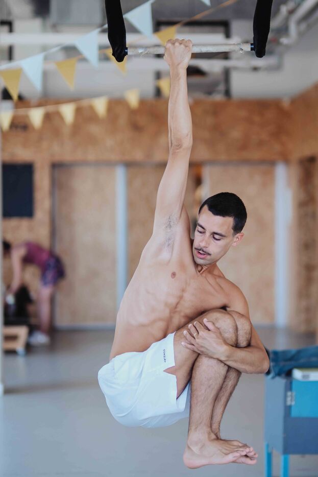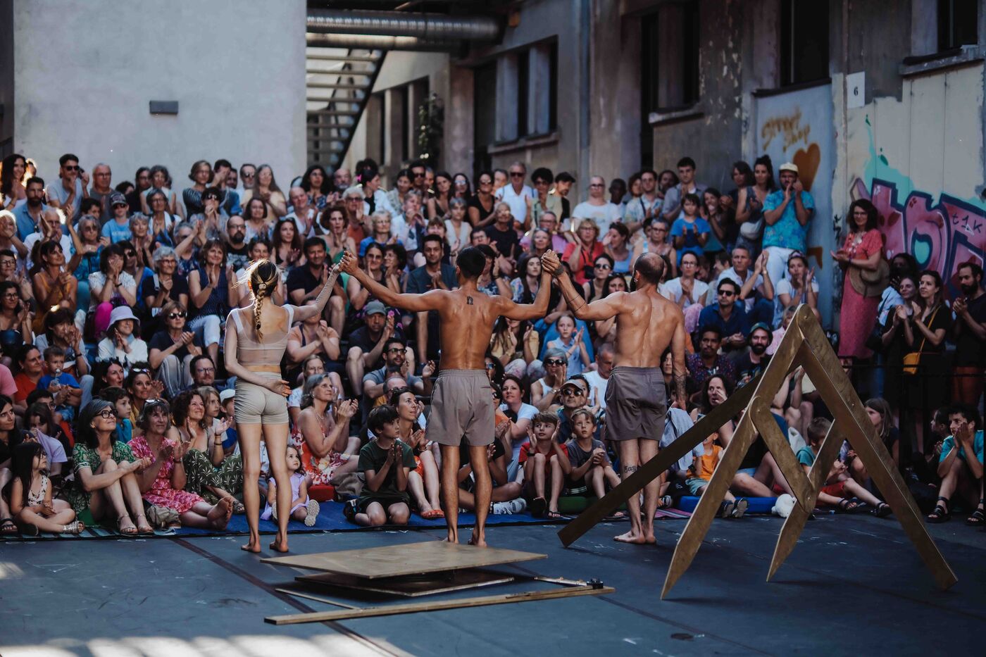 Le trio évolue en parfaite harmonie avec les lois de la géométrie sacrée, s’alignant aux équerres, règles et compas géants conçus sur mesure. Les corps se plient, se tordent et se figent dans des figures extrêmes, explorant l’équilibre parfait entre puissance et sérénité.