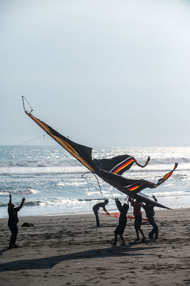 In Bali, flying kites are messengers between humans and the gods. The Balinese believe that when kite season arrives, Rare Angon comes to Earth with his flute to call the wind.