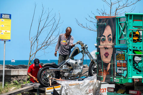 The festival's five stages resonate continuously: abrasive rock, furious punk, and hypnotic electro. The sets follow one another relentlessly, creating a wild soundtrack amidst the roaring engines. A memorable moment: during the Superman Is Dead concert, a machine is lifted above the excited audience like a living totem. More than 15,000 people chant "Indonesia" in unison, fusing music, metal, and adrenaline in a collective trance.