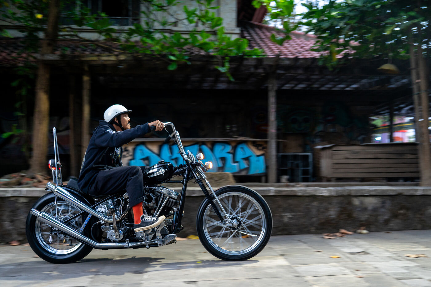 Le Custom War, c’est une déclaration. La guerre du custom n’est pas une bataille contre l’autre, mais un cri de guerre pour la liberté, pour la créativité brute, contre l’uniformisation des machines et des esprits. Dans un monde marqué par les crises politiques, sociales et écologiques, Bali devient l’épicentre d’un mouvement qui refuse de se plier. Et finalement, tout cela est ancestral. Par instants, on se croirait dans l’Amérique des années 50, à l’âge d’or des hot-rods, ou dans un film de Mad Max au milieu d’un désert futuriste. Au custom War, il n’y a plus de temps, plus de frontières : la colère, la joie et la rage de vivre traversent les époques et ne s’éteindront sans doute jamais. Ici, au milieu des moteurs rugissants et des fresques murales, on affirme que le custom survivra, parce qu’il porte en lui l’instinct le plus vital : la liberté de tracer sa propre route.