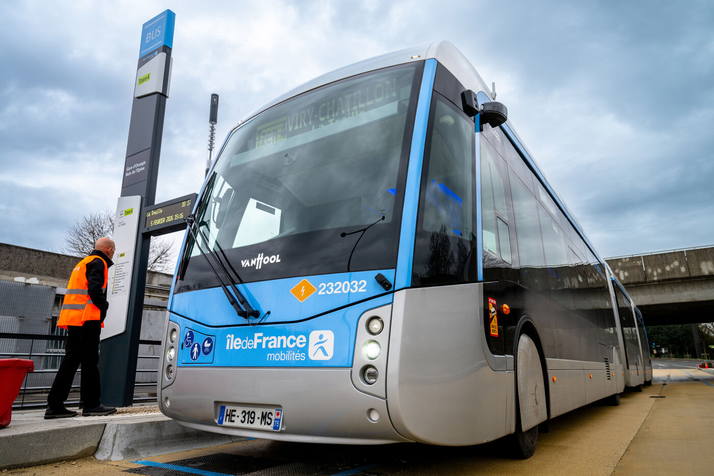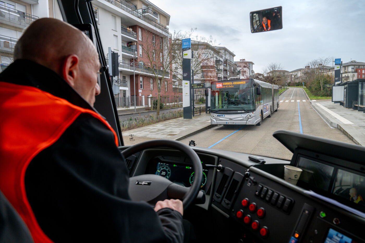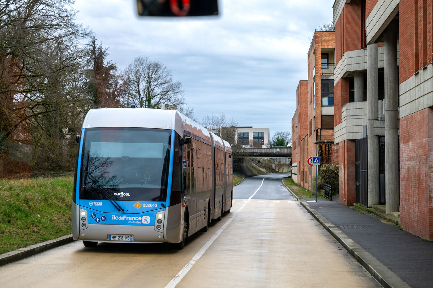 These 24-meter buses can carry up to 140 passengers and operate on dedicated bus lanes. They run from the Corbeil-Essonnes RER station to Viry-Chatillon in Essonne.