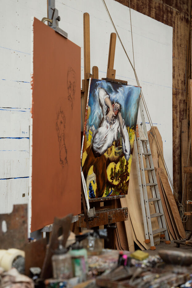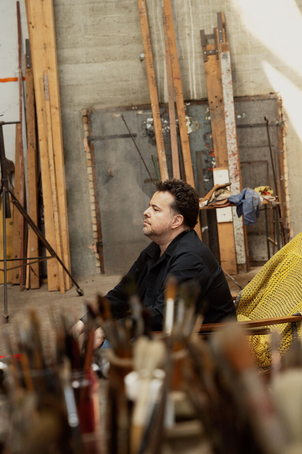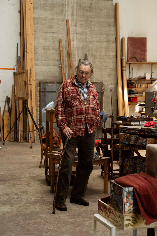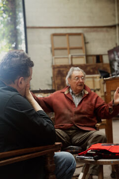 A dialogue between French journalist Nicolas Demorand and artist Gerard Garouste in his studio for a feature on mental health in Le Nouvel Obs, June 2025.