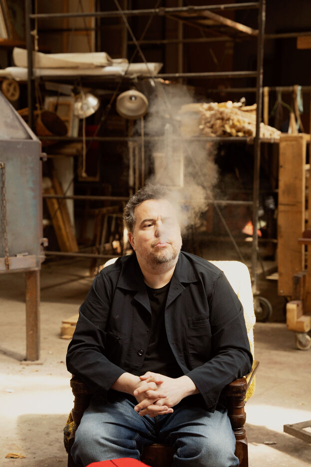 Portrait croisé du journaliste Nicolas Demorand et de l'artiste Gérard Garouste dans son atelier, à l'occasion d'un dossier sur la santé mentale du Nouvel Obs en juin 2025.
