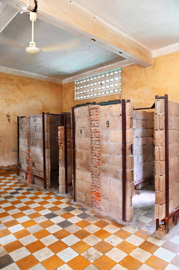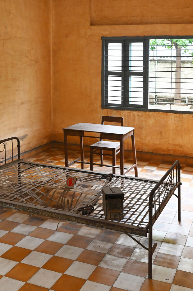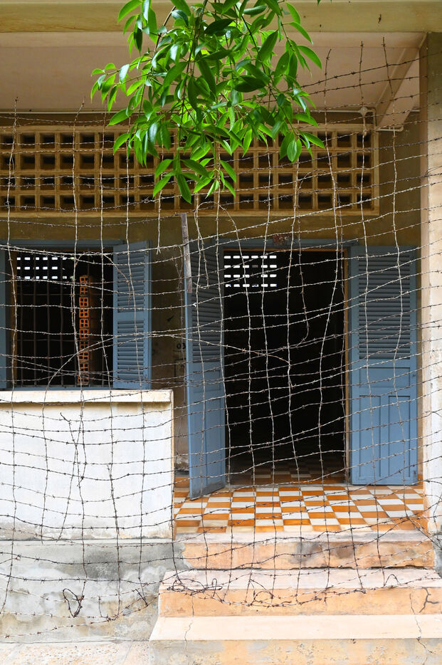Les bâtiments étaient recouverts de fil barbelé afin que les détenus ne se suicident pas. La décision de vie ou de mort incombait en effet à la direction de la prison. Les anciennes salles de classe devinrent cellules et lieux de torture dans lesquels les prisionniers allongées par terre, les pieds attachés à de longues barres de fer par des anneaux en fonte. Leur visite est saisissante. En 1979, les Vietnamiens renversent les Khmers rouges. Au S-21, seuls 8 survivants sont retrouvés, 8 hommes et 4 enfants, cachés dans une pile de vêtements. Pol Pot et ses complices trouvent refuge dans la jungle d'où ils continueront à mener des actions de guérilla. Arrêté en 1997, Pol Pot est condamné à la réclusion à perpétuité. Il décédera en 1998. Douch, le directeur du S-21 est inculpé en 2007 pour crimes contre l'humanité et est condamné à 35 ans de prison par le tribunal du génocide cambodgien en 2010.