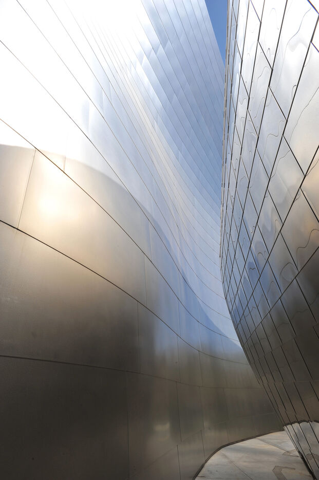 Among his best-known works: The Walt Disney Concert Hall (Los Angeles), pictured here, the Guggenheim Museum in Bilbao, Spain, the Weisman Art Museum in Minneapolis, the Dancing House in downtown Prague, the Vitra Design Museum near Basel, the Art Gallery of Ontario in Toronto, 8 Spruce Street in New York, the Cinémathèque française in Paris, the Louis-Vuitton corporate foundation in Paris and the Tower which rises in the heart of the Ateliers du Luma in the city of Arles. One of his more discreet works, but one of which he was proud, was the Maggie center in the city of Dundee, built to welcome cancer patients to provide them with a friendly and warm environment during their visits to Ninewells Hospital.