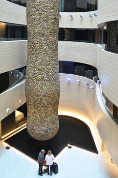 Among his best-known works: The Guggenheim Museum in Bilbao, pictured here, the Walt Disney Concert Hall (Los Angeles),the Weisman Art Museum in Minneapolis, the Dancing House in downtown Prague, the Vitra Design Museum near Basel, the Art Gallery of Ontario in Toronto, 8 Spruce Street in New York, the Cinémathèque française in Paris, the Louis-Vuitton corporate foundation in Paris and the Tower which rises in the heart of the Ateliers du Luma in the city of Arles. One of his more discreet works, but one of which he was proud, was the Maggie center in the city of Dundee, built to welcome cancer patients to provide them with a friendly and warm environment during their visits to Ninewells Hospital.