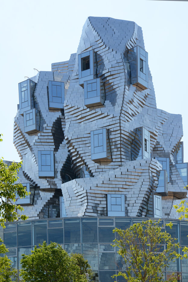 Among his best-known works: The LUMA Tower, in Arles, inaugured on July 4, 2021 (pictured here), the Guggenheim Museum in Bilbao, the Weisman Art Museum in Minneapolis, the Dancing House in downtown Prague, the Walt Disney Concert Hall (Los Angeles),the Vitra Design Museum near Basel, the Art Gallery of Ontario in Toronto, 8 Spruce Street in New York, the Cinémathèque française and the Louis-Vuitton corporate foundation, in Paris. One of his more discreet works, but one of which he was proud, was the Maggie center in the city of Dundee, built to welcome cancer patients to provide them with a friendly and warm environment during their visits to Ninewells Hospital.