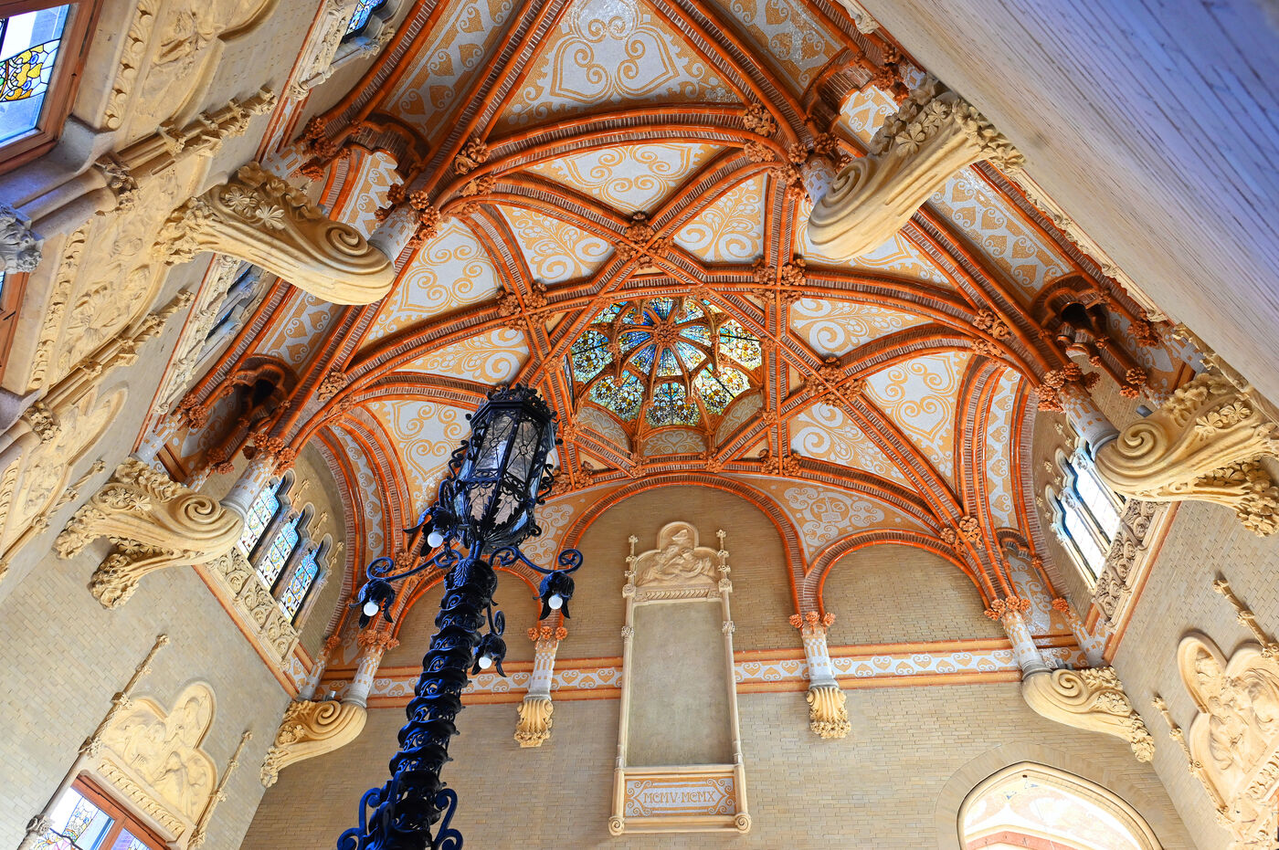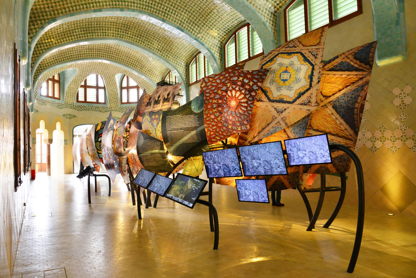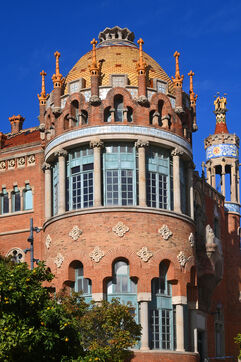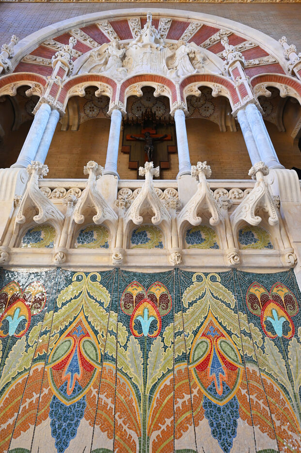 A Reus, ville natale de Gaudi où il ne construisit jamais rien, Domenech i Montaner réalise plusieurs maisons et le magnifique institut Pere Mata. Avec la Casa Navas, ce sont sans doute ses plus beaux manifestes avec leurs intérieurs d’origine où les arts décoratifs atteignent leur apogée, véritable foisonnement de mosaïques, vitraux, céramiques et meubles à motifs floraux. Reus compte une centaine de constructions modernistes réalisée par des architectes tels que Pere Caselles ou Joan Rubio i Bellver. La trentaine sélectionnée offre un joli parcours dans la ville. A Barcelone, les constructions les plus connues de Lluis Domenech i Montaner sont la magnifique enceinte moderniste de l’hôpital San Pau et l’incroyable palais de la musique catalane.