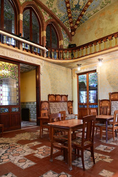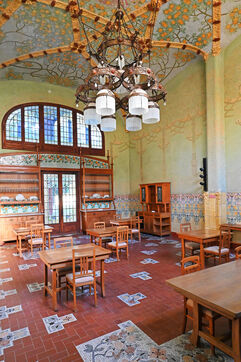 In Reus, Gaudi's hometown where he never built anything, Domenech i Montaner built several houses and the magnificent Pere Mata Institute, here on photos. With Casa Navas, these are undoubtedly its most beautiful manifestos with their original interiors where the decorative arts reach their peak, a veritable abundance of mosaics, stained glass, ceramics and furniture with floral motifs. Reus has around a hundred modernist buildings created by architects such as Pere Caselles or Joan Rubio i Bellver. The thirty selected offer a nice route through the city. In Barcelona, the best-known constructions of Lluis Domenech i Montaner are the magnificent modernist enclosure of the San Pau hospital and the incredible Palace of Catalan Music.