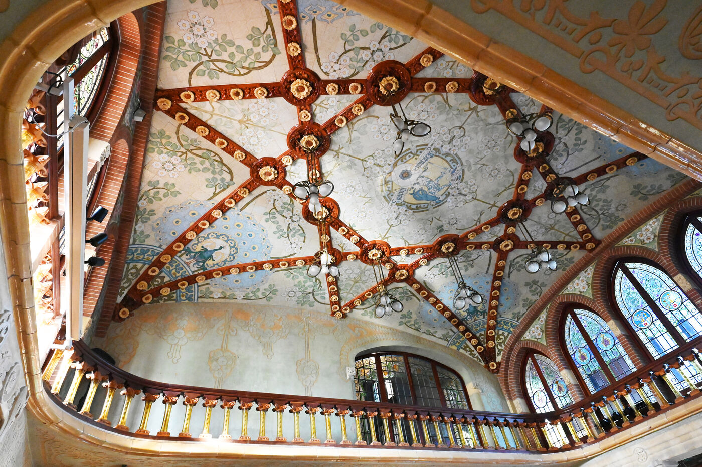 A Reus, ville natale de Gaudi où il ne construisit jamais rien, Domenech i Montaner réalise plusieurs maisons et le magnifique institut Pere Mata, ici en photo. Avec la Casa Navas, ce sont sans doute ses plus beaux manifestes avec leurs intérieurs d’origine où les arts décoratifs atteignent leur apogée, véritable foisonnement de mosaïques, vitraux, céramiques et meubles à motifs floraux. Reus compte une centaine de constructions modernistes réalisée par des architectes tels que Pere Caselles ou Joan Rubio i Bellver. La trentaine sélectionnée offre un joli parcours dans la ville. A Barcelone, les constructions les plus connues de Lluis Domenech i Montaner sont la magnifique enceinte moderniste de l’hôpital San Pau et l’incroyable palais de la musique catalane.