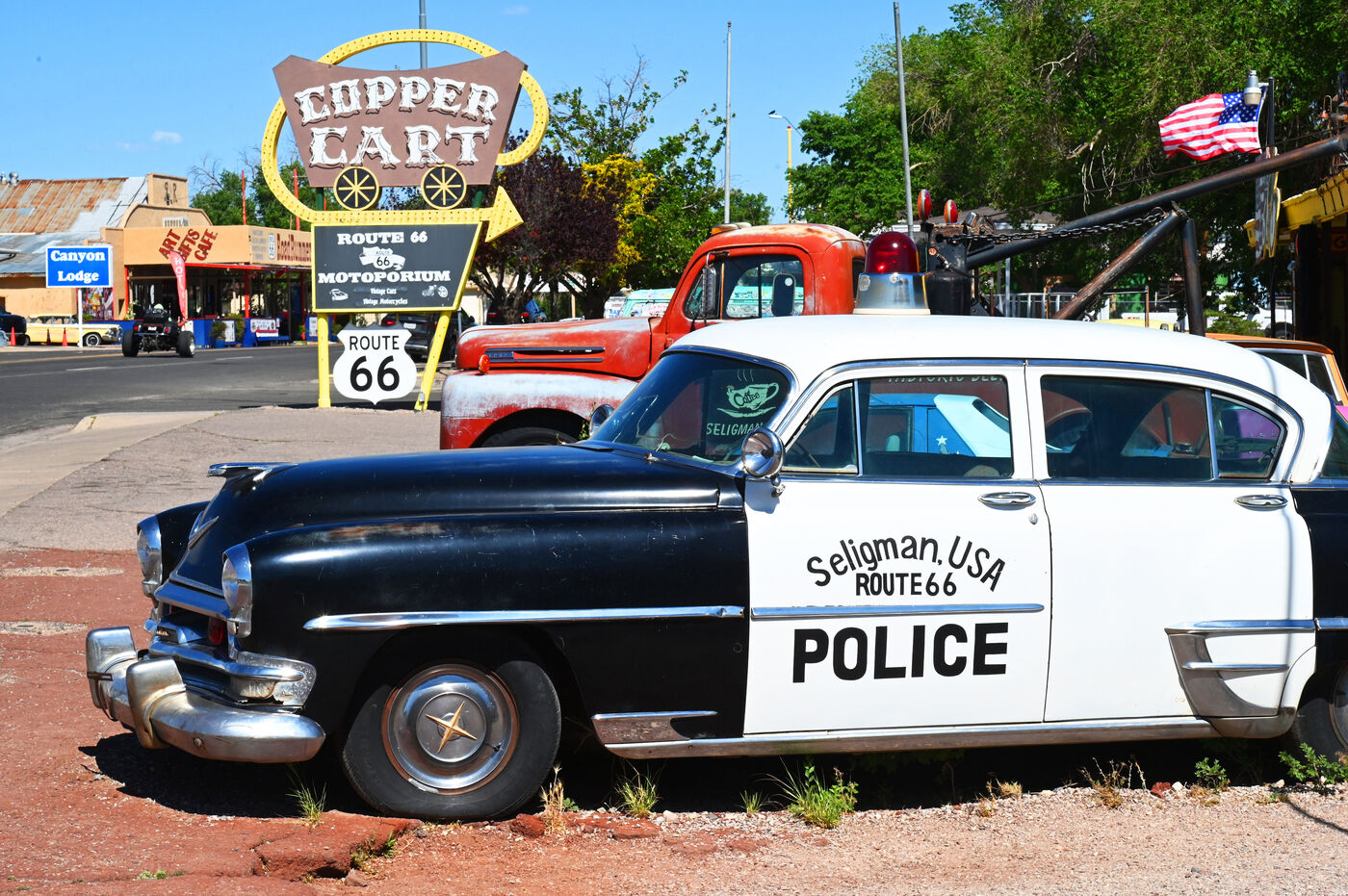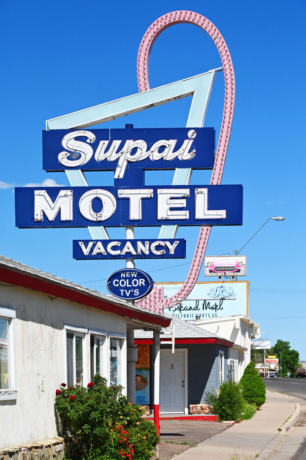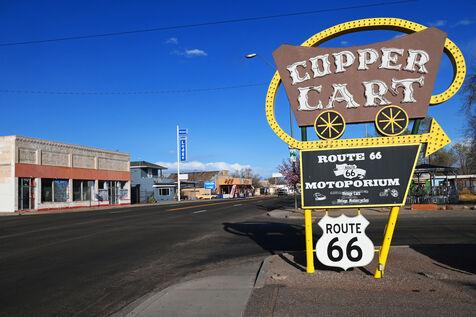 At the junction of two parks, Petrified Forest and Painted Desert, the rusted hulk of a 1932 Studebaker marks the original location of Route 66. But in the 1960s, the new Interstate 40 relegated it to the status of a simple tourist route and plunged many villages, garages, motels and diners into oblivion. But the Mother Road, as Americans affectionately call it, resists and retains many traces of its past splendor. In Holbrook, treat yourself by sleeping in a concrete teepee at the Wigwam hotel. Head to Flagstaff. Traces of Route 66's heyday are scattered along the asphalt. Here the Jack Rabbit trading post sign, there the two rusty arrows of the Twin Arrow Motel (one is on the ground), elsewhere gas stations converted into souvenir shops and museums (Winslow, Winona).You can't miss Flagstaff. The entrance to the town is a succession of motels. Above all, there is the Museum Club, one of the oldest bars on Route 66 where music and country dance classes take place every evening. This is the town of Williams. Its city center is entirely dedicated to Route 66 with a host of restaurants, bars, museums (Pete’s Route 66 gas station) and amazing stores such as that of the hatter Jay Redfeather. Further west, the small town of Seligman is also home to famous motels (Historic Route 66, Supai, Stagecoach) and unmissable restaurants (Westside Lilo, Road Kill cafe).In Oatman, actors Clark Gable and Carol Lombard spent their wedding night on March 19, 1939. A main street, bars, restaurants, dust, a hotel. What could have attracted this legendary couple to this small room at the Oatman Hotel? It is in the vicinity of Oatman, at the Sitgreaves Pass, that Route 66 leaves the straight line to allow a few hazardous turns. A little moment of confusion quickly recovered. The ribbon of asphalt suddenly straightens out to run straight to California and Santa Monica, its terminus.