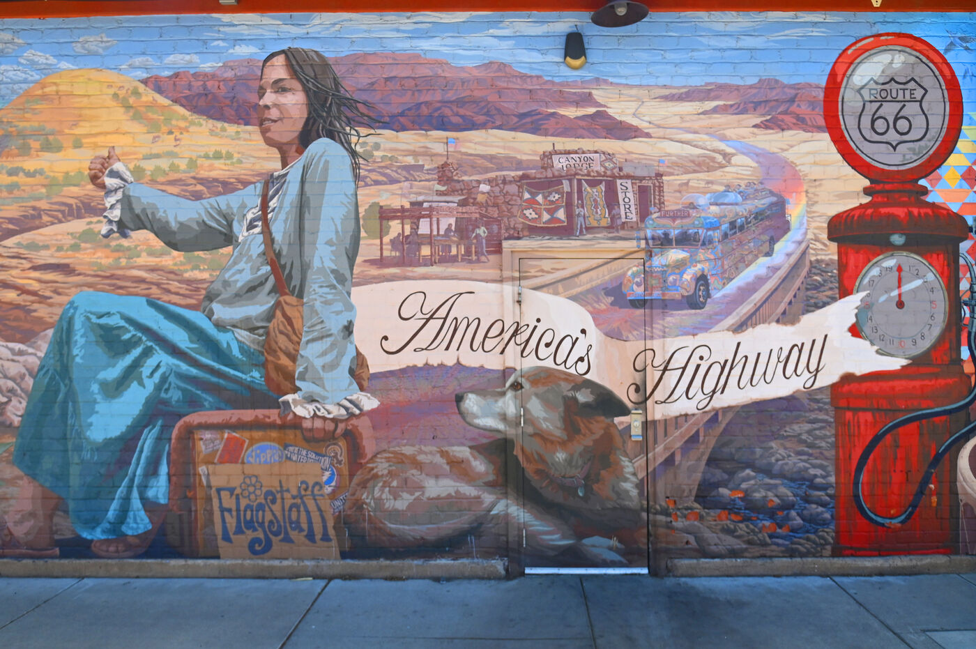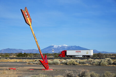 A la jonction de deux parcs de Petrified Forest et de Painted Desert, la carcasse rouillée d’une Studebaker de 1932 marque l’emplacement originel de la Route 66. Mais, dans les années 60, la nouvelle Route Interstate 40 la relégua au rang de simple route touristique et plongea nombre de villages, de garages, de motels et de dîners dans l’oubli. Mais la Mother Road, comme l’appellent affectueusement les Américains, résiste et garde de nombreuses traces de sa splendeur passée. A Holbrook, faites vous plaisir en dormant dans un tipi en béton du Wigwam hotel. Direction Flagstaff. Les traces des grandes heures de la Route 66 s’égrènent le long du bitume. Ici la pancarte de Jack Rabbit trading post, là les deux flèches rouillées du Motel Twin Arrow (une est à terre), ailleurs des stations services reconverties en magasins de souvenirs et en musées (Winslow, Winona). Impossible de rater Flagstaff. L’entrée de la ville est une succession de motels. Il y a surtout le Museum Club, un des plus vieux bar de la Route 66 où musique et cours de danse country ont lieu tous les soirs. Voici la ville de Williams. Son centre ville est tout entier dédié à la Route 66 avec une foule de restaurants, de bars, de musées (Pete’s Route 66 gas station) et de magasins étonnants tel celui du chapelier Jay Redfeather. Plus loin vers l’Ouest, la petite ville de Seligman abrite elle aussi des motels fameux (Historic Route 66, Supai, Stagecoach) et des restaurants incontournables (Westside Lilo, Road Kill cafe). A Oatman, les acteurs Clark Gable et Carol Lombard passèrent leur nuit de noce le 19 mars 1939. Une rue principale, des bars, des restaurants, de la poussière, un hôtel. Qu’est ce qui a bien pu attirer ce couple mythique dans cette petite chambre de l’hôtel Oatman. C’est dans les alentours d’Oatman, au col de Sitgreaves Pass, que la Route 66 quitte la ligne droite pour se permettre quelques virages hasardeux. Un petit moment d’égarement vite rattrapé. Le ruban d’asphalte se redresse soudain pour filer droit jusqu’en Californie et Santa Monica, son terminus.