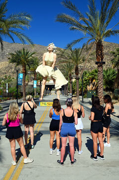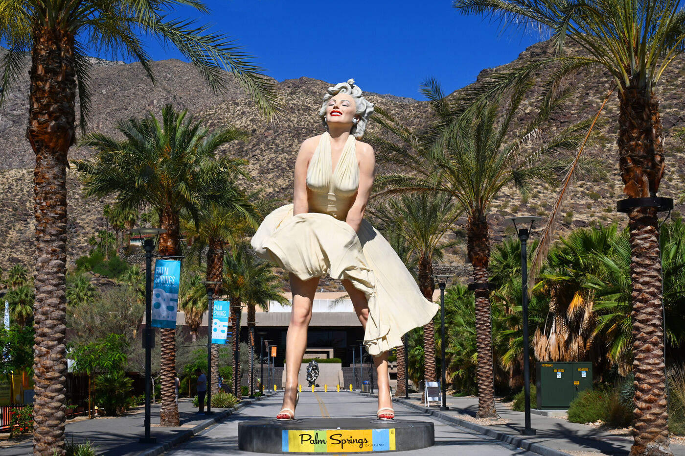 Mariée avec la star du baseball Joe DiMaggio puis avec l’écrivain Arthur Miller, sa relation présumée avec le président américain John F. Kennedy fait la une des tabloïds. Elle se suicide le 4 août 1962, à l’âge de 36 ans. Parmi les nombreuses œuvres qui la représentent, dont les célèbres peintures d’Andy Warhol, la statue géante Forever Marilyn, désormais exposée à Palm Springs (Californie) a été réalisée par l’artiste Seward Jonhson en 2011. Avec ses huit mètres de haut, elle représente Marilyn Monroe dans la pose la plus connue du film Sept ans de réflexion.