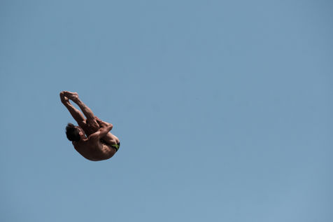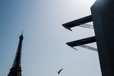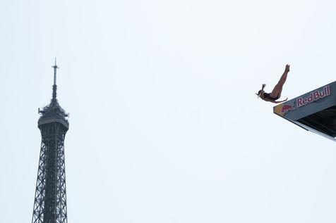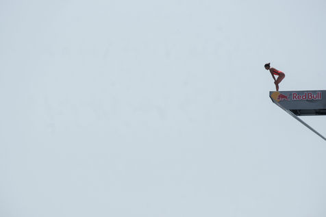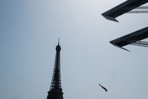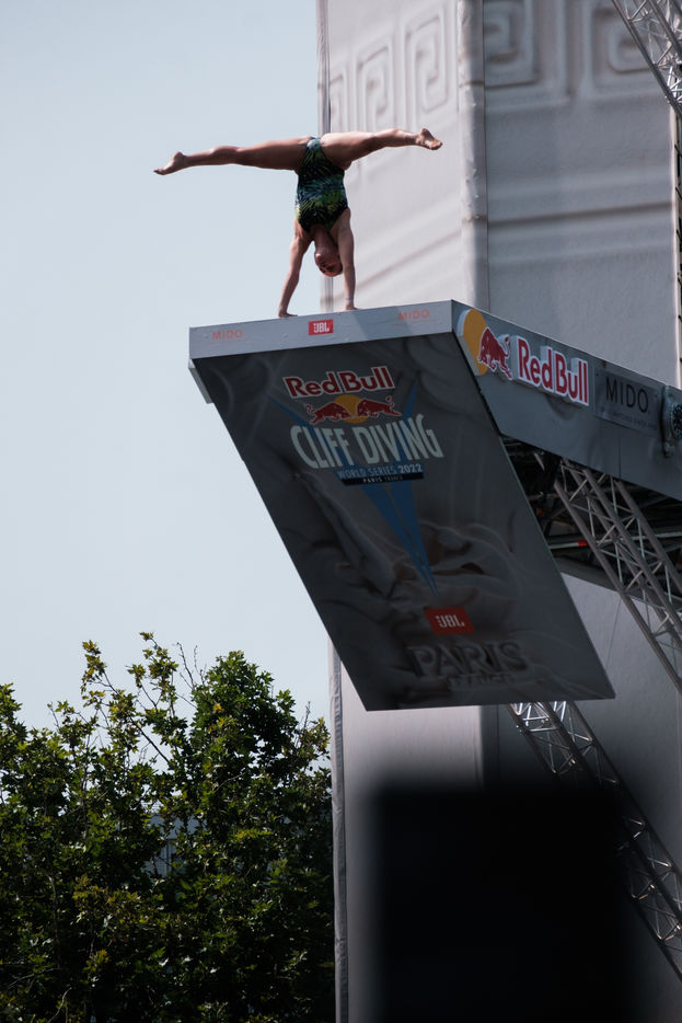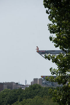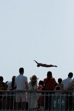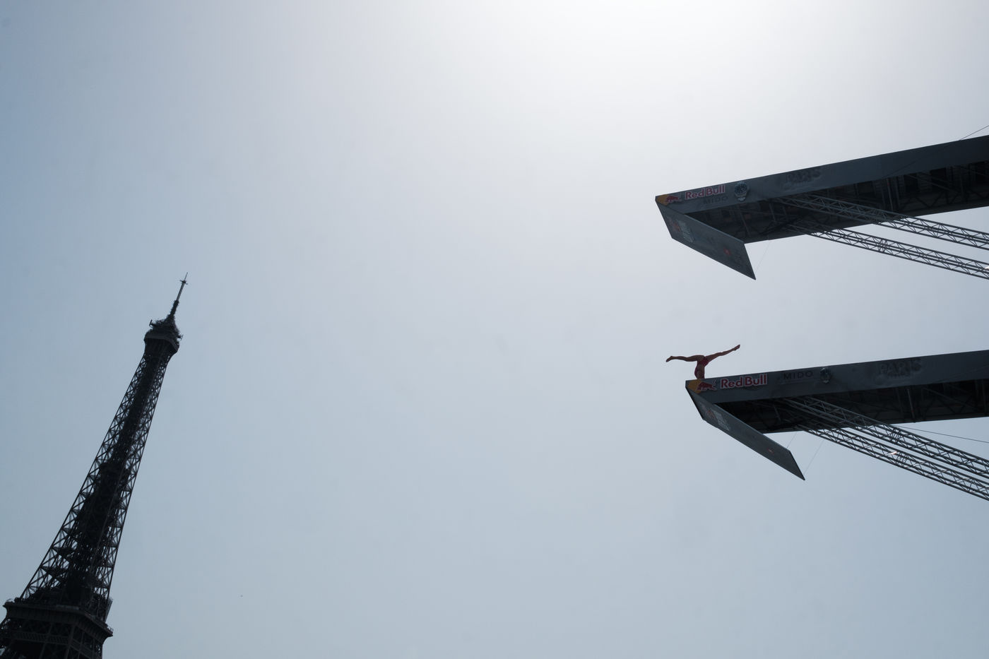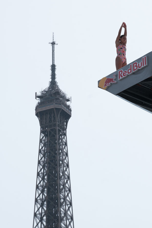 Les 12 plongeurs sautent depuis une plateforme de 27 mètres de haut, 21 mètres pour les 12 plongeuses.