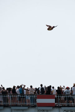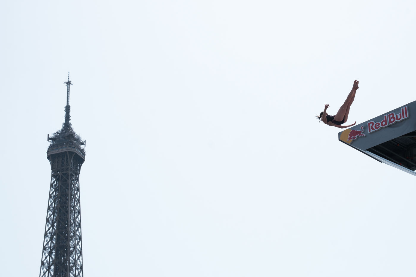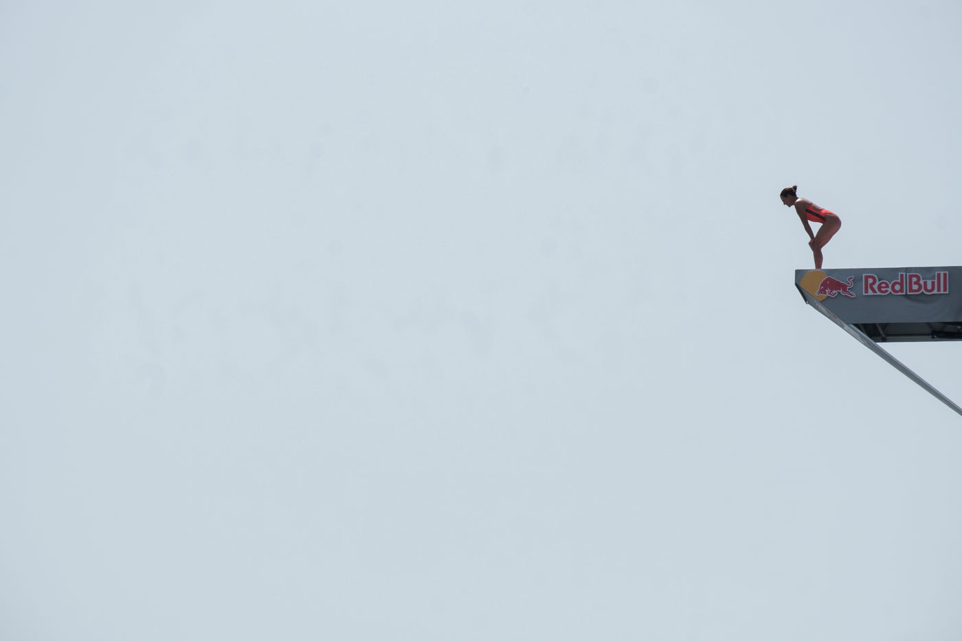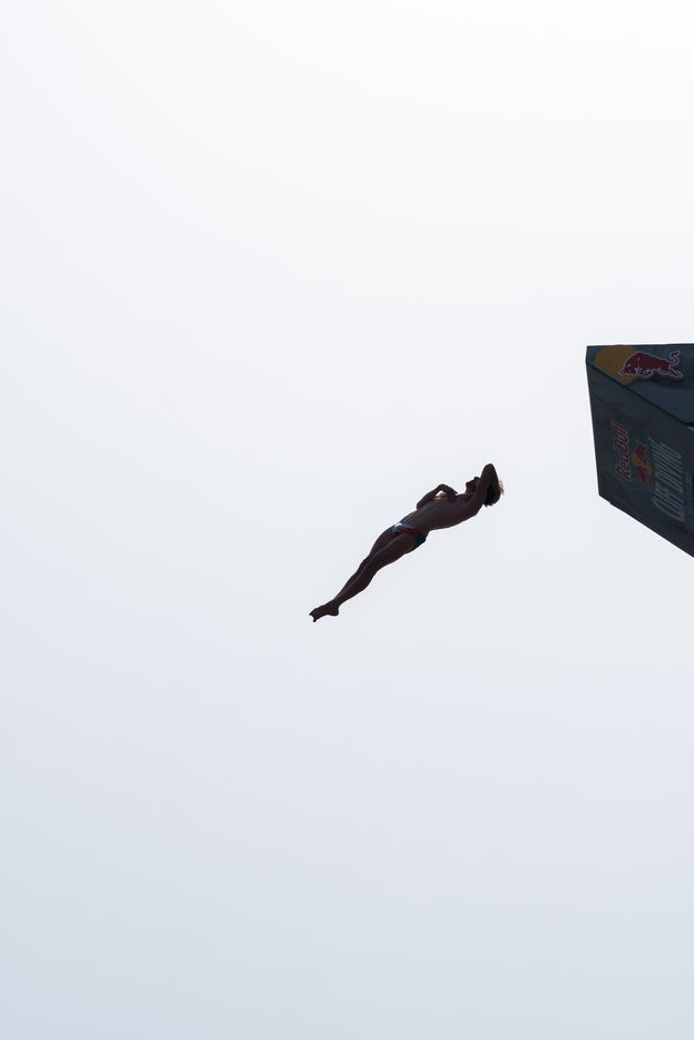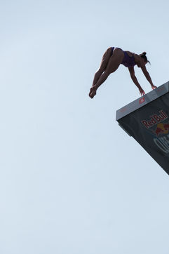 The 12 divers jump from a 27 meters high platform, 21 meters for the 12 female divers.