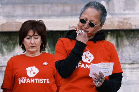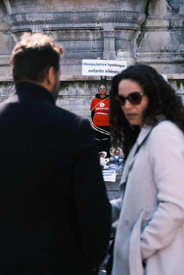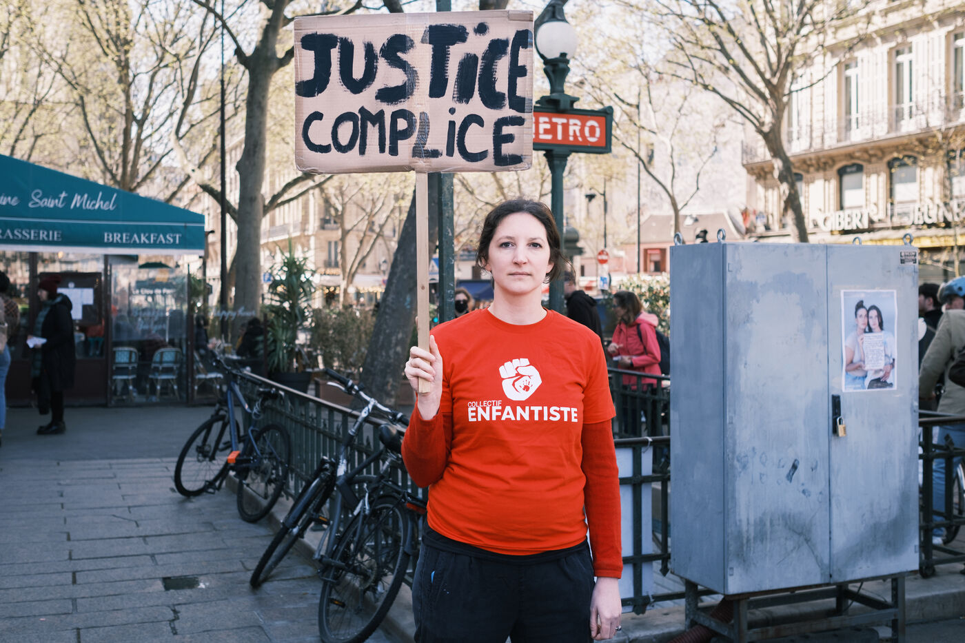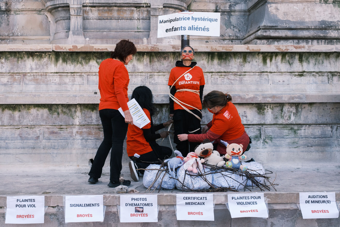 Manifestation du "Collectif enfantiste" contre les violences physiques et sexuelles faites aux enfants, en soutien aux mères condamnées par la justice pour avoir voulu protéger leurs enfants d'un père violent, et en dénonciation des dysfonctionnements judiciaires concernant la protection de l'enfance.
