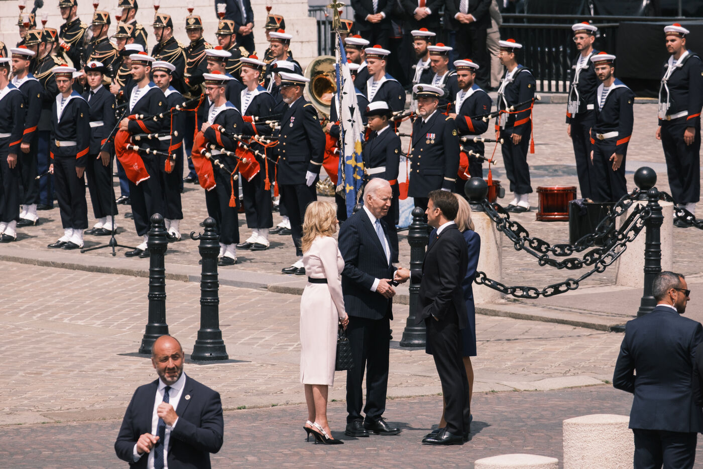 Pour sa première visite d'État en France, le Président des États-Unis d'Amérique Joseph Biden est reçu à Paris par le Président français Emmanuel Macron, et participe à la cérémonie du ravivage de la Flamme de la Nation sous l'Arc de Triomphe. L'année 2024 marque les 80 ans du débarquement en Normandie lors de la Seconde Guerre mondiale.