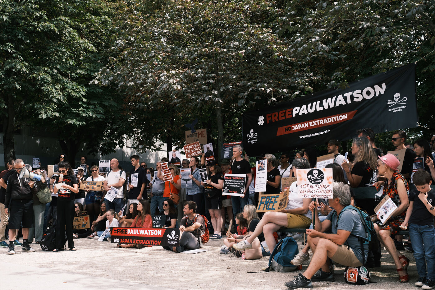 Rally in support of whale activist and founder of the NGO Sea Shepherd Paul Watson, detained in a Greenland prison for his activist activities.