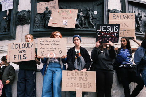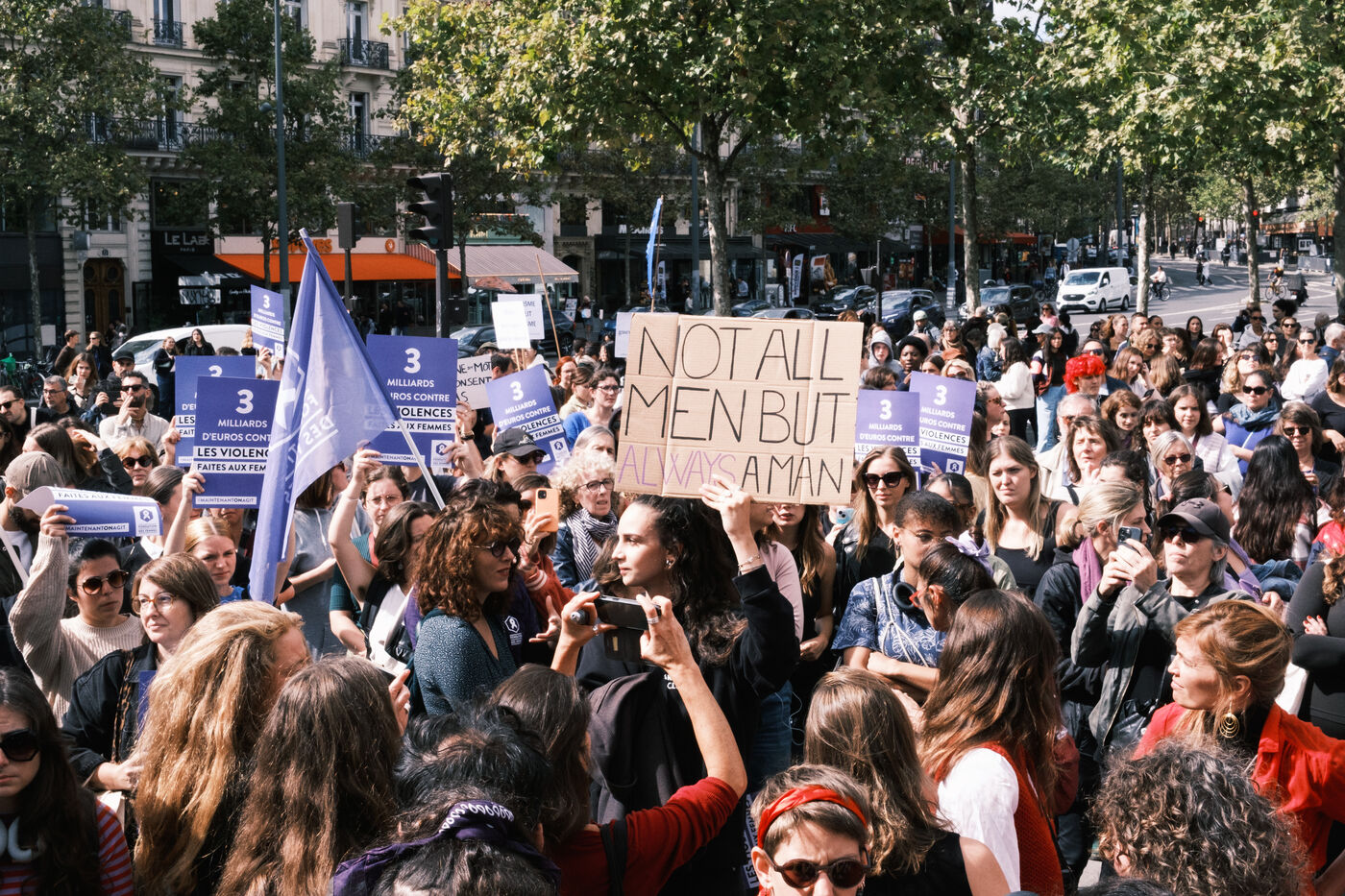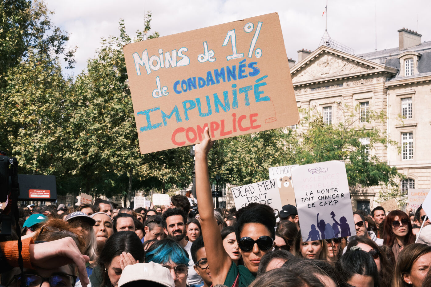 Feminist rally organized by Anna Toumazoff, Blanche Sabbah and Mathilde Caillard, in support of Gisèle Pélicot and all victims of sexist and sexual violence.