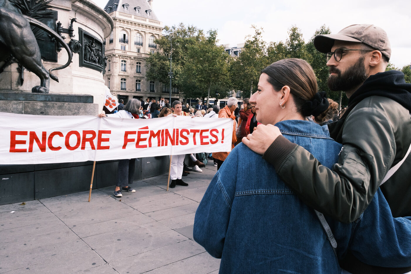 Rassemblement féministe organisé par Anna Toumazoff, Blanche Sabbah et Mathilde Caillard, en soutien à Gisèle Pélicot et à toutes les victimes de violences sexistes et sexuelles.