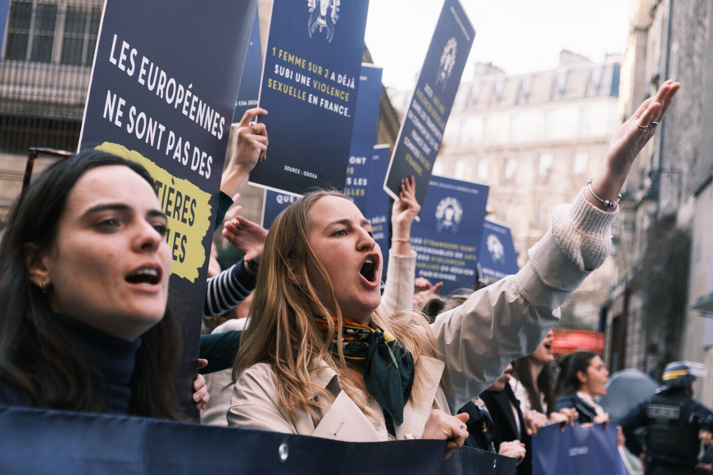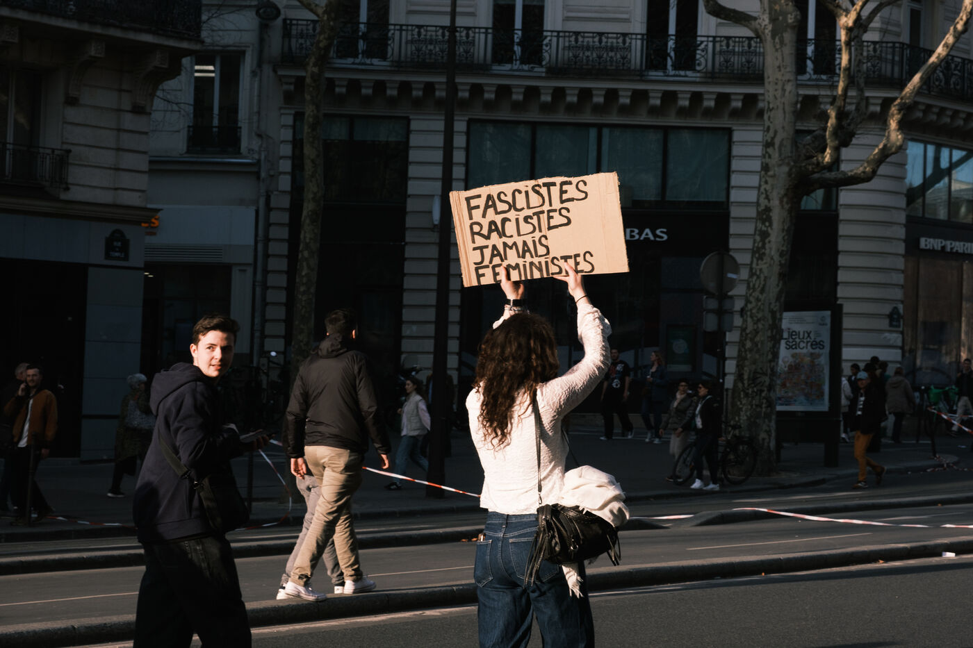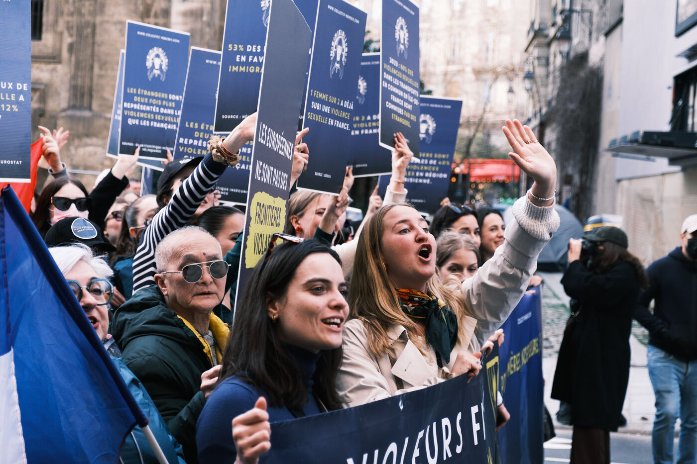 Le collectif d'extrême droite fémonationaliste Némésis manifeste lors de la journée internationale des droits des femmes.