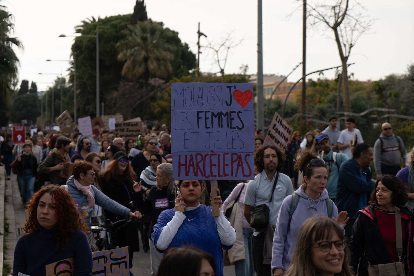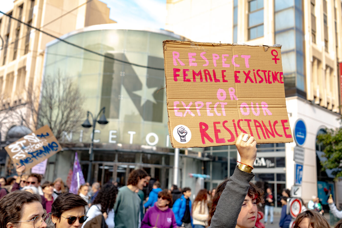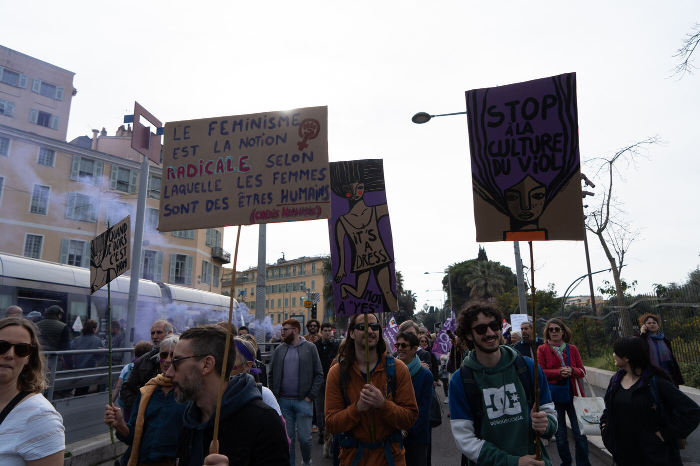 More than 1,000 people demonstrated in the streets of Nice in support of women's rights.
