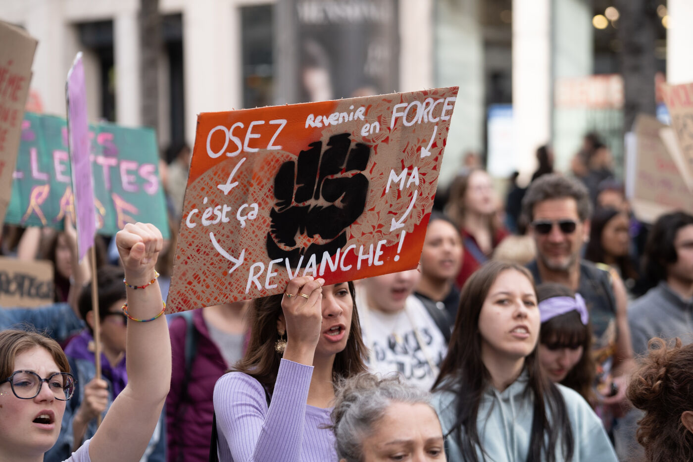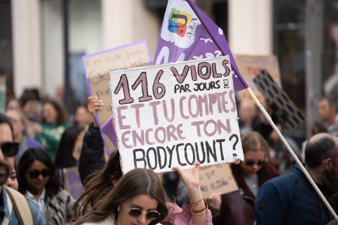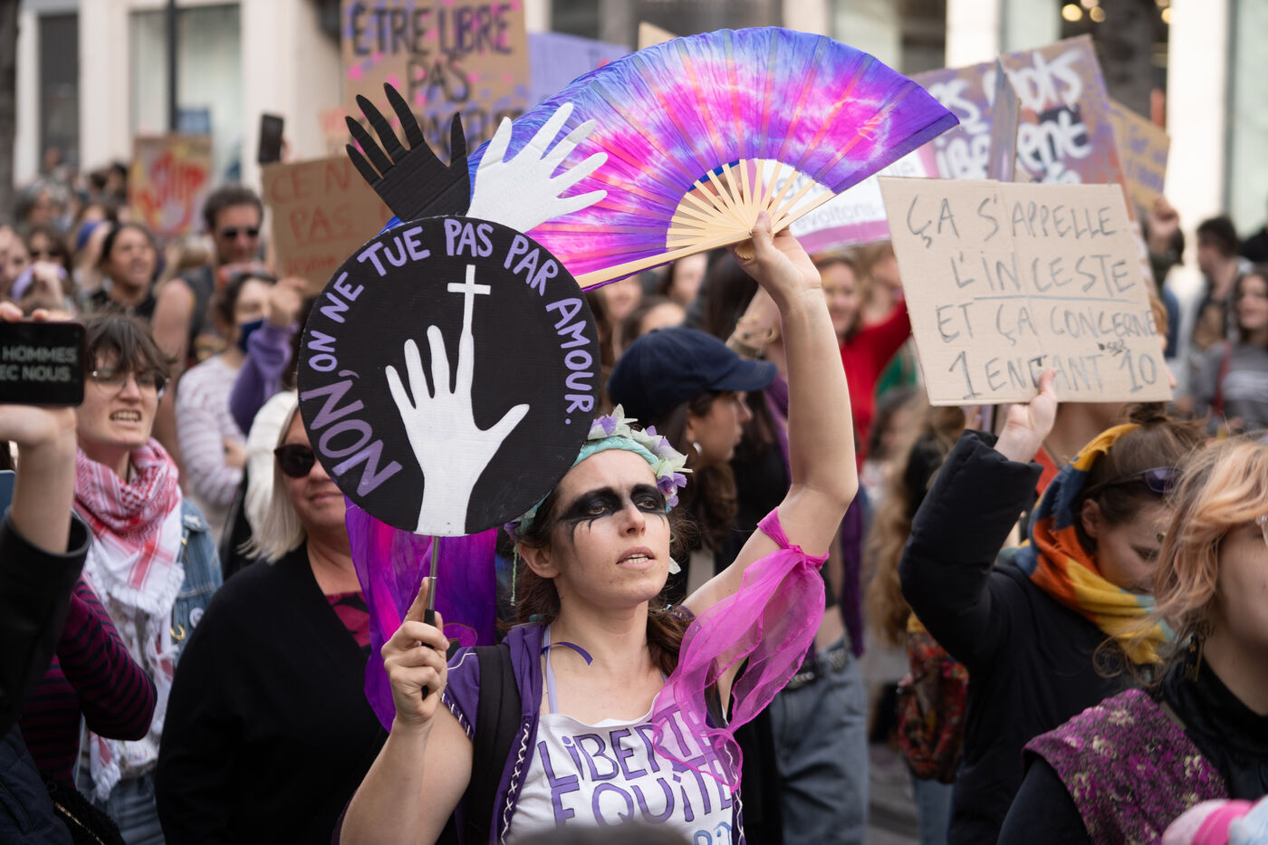 More than 1,000 people demonstrated in the streets of Nice in support of women's rights.