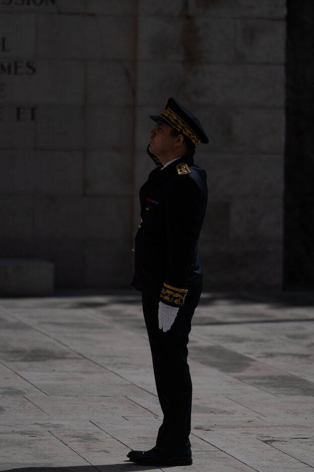 Laurent Hottiaux remet une gerbe au monument aux mort et se presente devant les différentes institutions locales pour sa prise de fonction comme préfet des Alpes Maritimes.