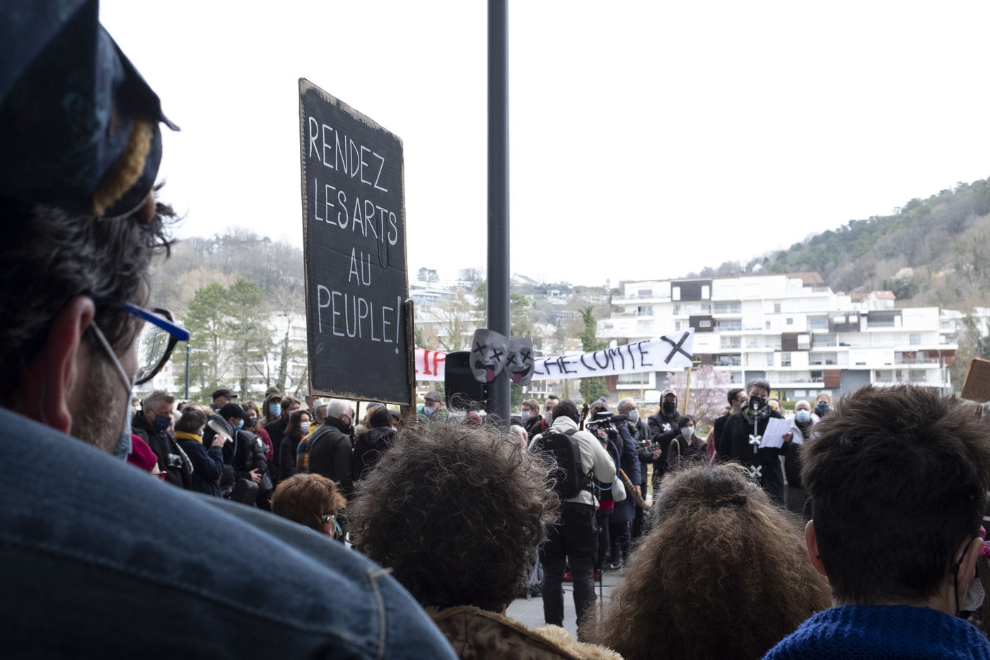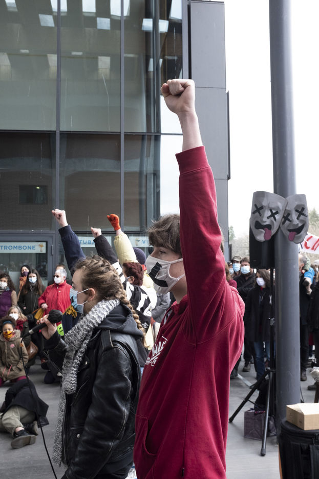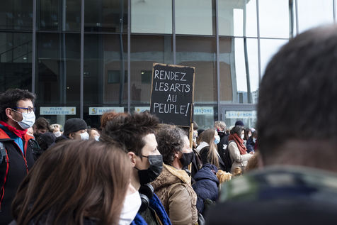 Entre 11h et 13h30 divers acteur.rice.s du monde culturel local ont pris la parole pour évoquer les conditions dans lesquelles ils.elles se trouvent depuis un ans et pour exprimer leurs inquiétudes quant à l'avenir du secteur. Tou.te.s étaient unanimes sur la manière dont le gouvernement gère le secteur depuis la fin du premier confinement, elles.ils se sentent délaissé.e.s, non pris.es en compte, et rétrogradé.e.s au statut de "non essentiel".
