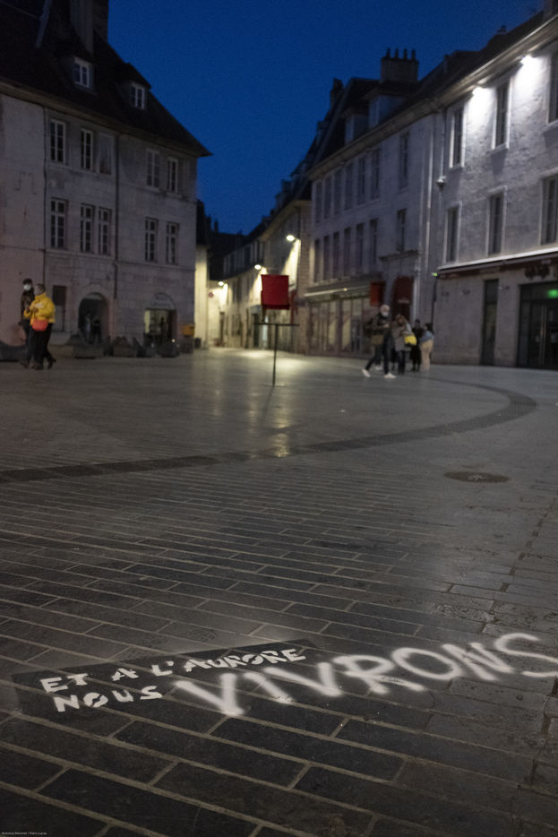 Réuni.e.s dès 4h30, pour reprendre une dernière fois ensemble et finaliser leur représentation, ces artistes ont ensuite pris la direction du centre-ville de Besançon pour exprimer leur art. Le spectacle était prévu pour 6h, heure de la levée du couvre-feu.