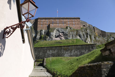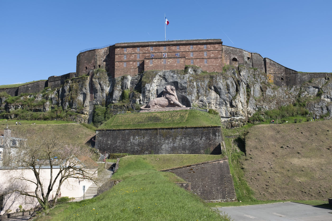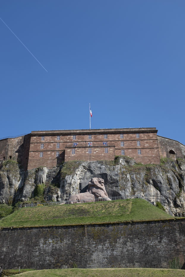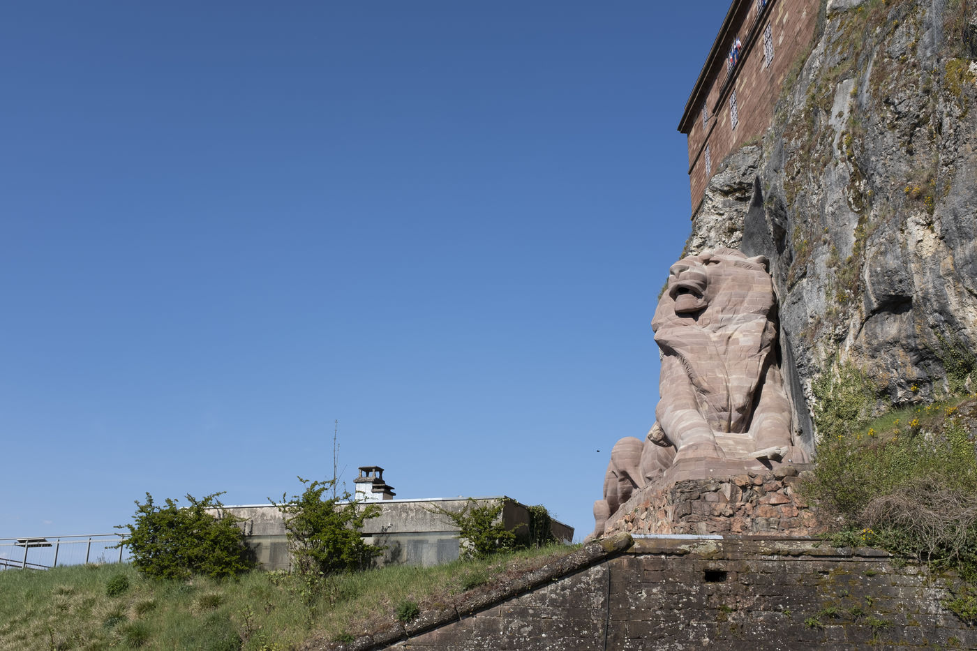 Illustration du lion d'Auguste Bartholdi a Belfort construit pendant 5 ans à partir de 1875. Cette ?uvre est situee en contrebas de la citadelle et commemore la resistance de la ville lors la guerre franco-allemande de 1870.