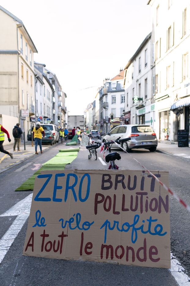 On Saturday 3 December 2022, for one and a half hours, about fifty activists involved in the climate movement in Besançon temporarily blocked part of a busy road to create a cycle track.