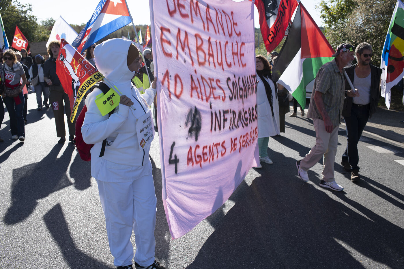 À l’occasion de la journée de mobilisation intersyndicale, s’inscrivant dans le prolongement du mouvement « Bloquons tout » lancé le 10 septembre, environ 250 personnes, de Nemours et ses environs, se sont réunies pour protester contre le projet porté par E.Macron et ses gouvernements successifs. La CGT ainsi que la FSU avaient organisé une marche entre l’entreprise STEF, où des « licenciements abusifs » sont dénoncés, et la place de la République. Des professeur·es, enseignant·es, personnels de l'hôpital, travailleur·ses des usines et industries du coin ont marché uni·es avant des prises de parole en fin de cortège.