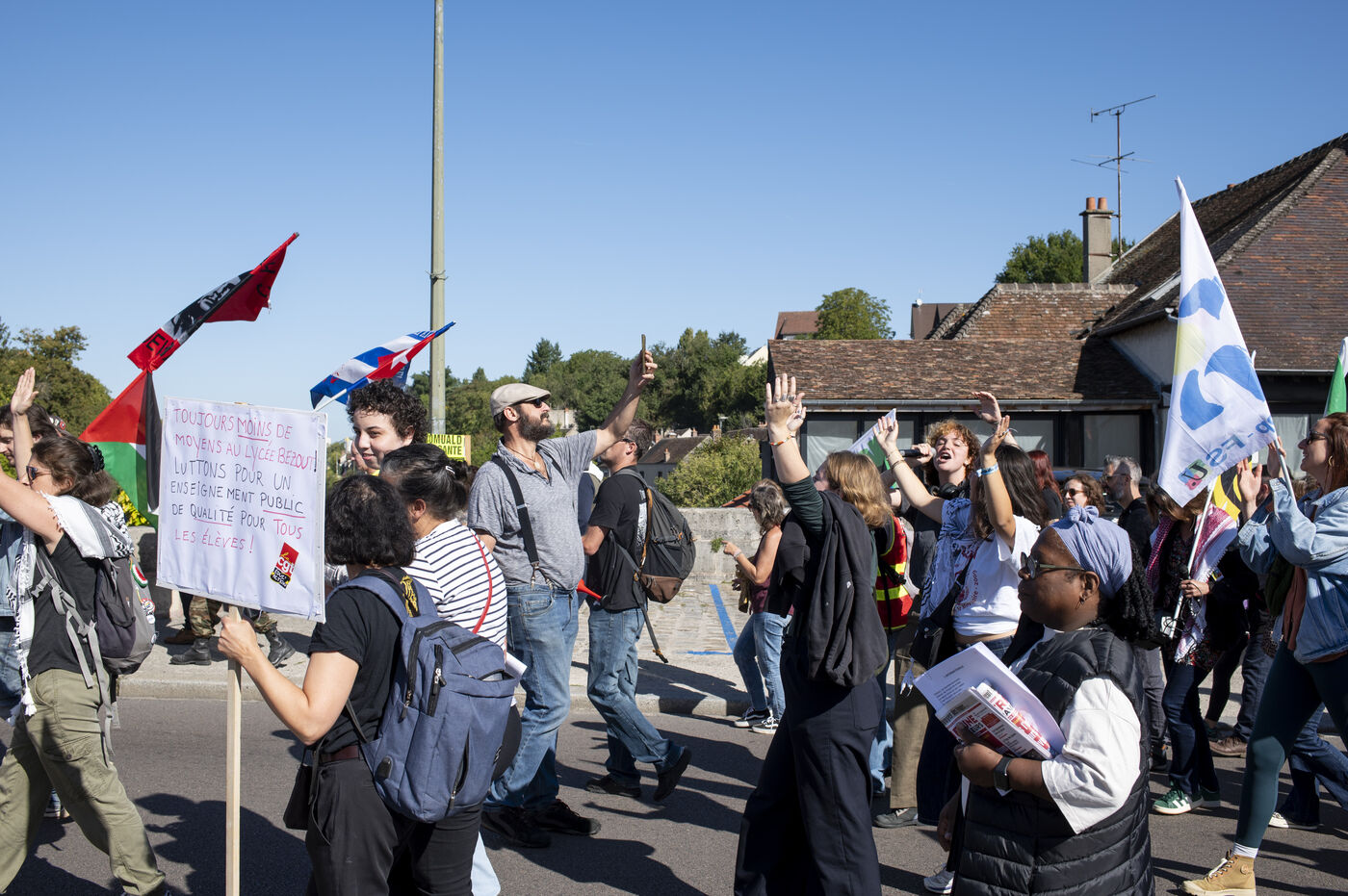 On the occasion of the inter-union day of action, following on from the ‘Bloquons tout’ movement launched on 10 September, around 250 people from Nemours and the surrounding area gathered to protest against the project promoted by E. Macron and his successive governments. The CGT and FSU unions organised a march between the STEF company, where ‘unfair dismissals’ are being denounced, and Place de la République. Teachers, hospital staff and workers from local factories and industries marched together before speeches were given at the end of the procession.