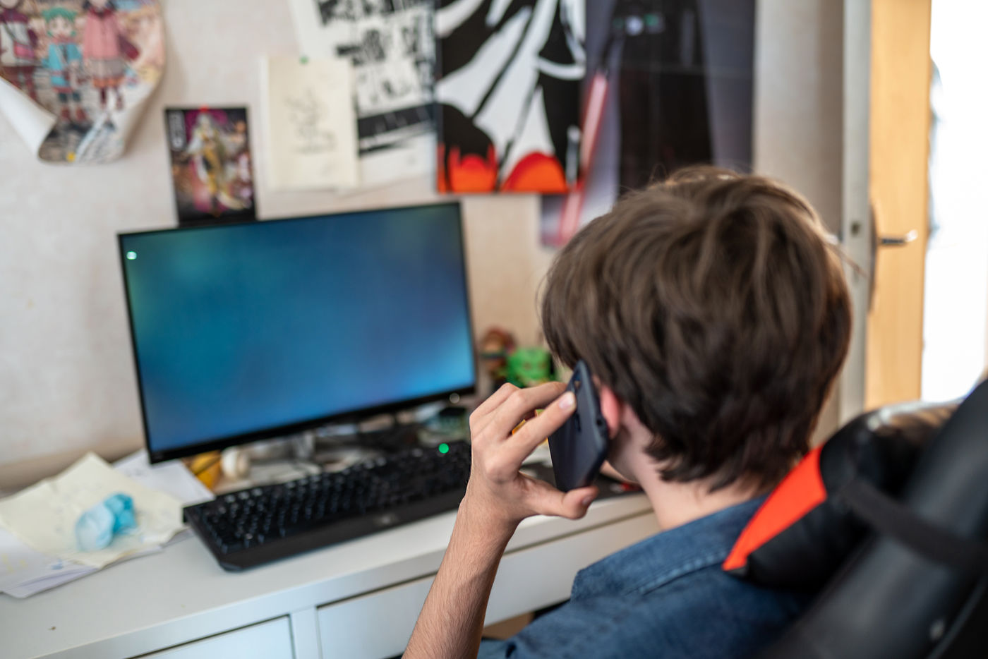 Illustration d'un adolescent devant un ordinateur dans sa chambre