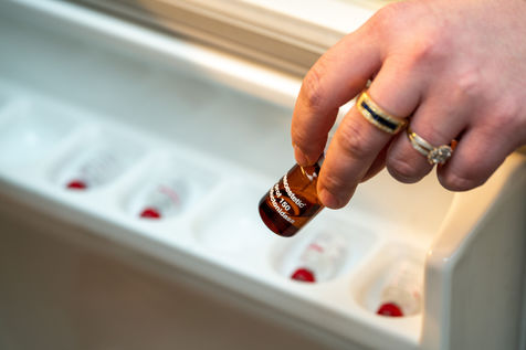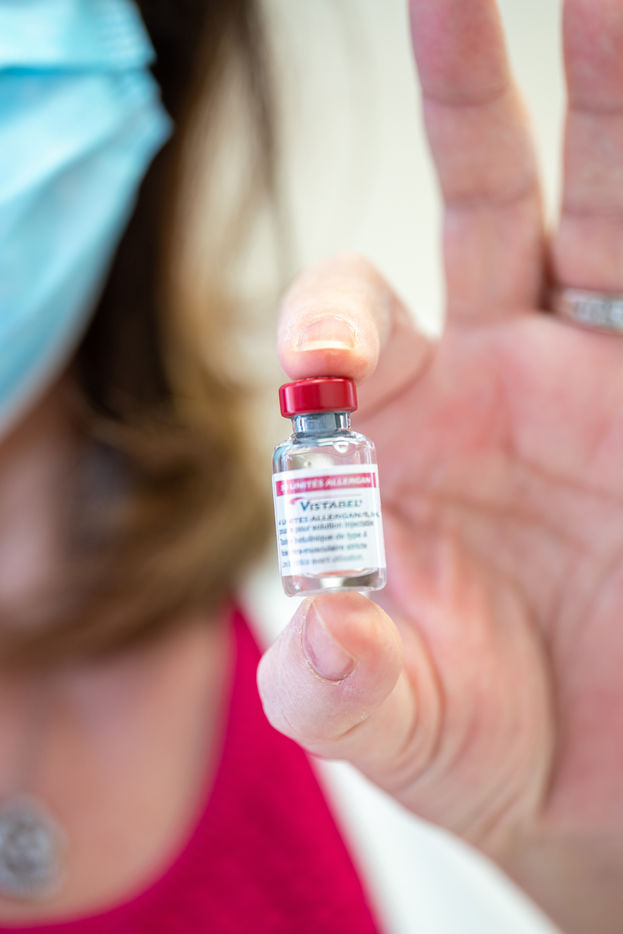 GP flacons solutions acide hyaluronique. Dans le cabinet d'un dermatologue parisien