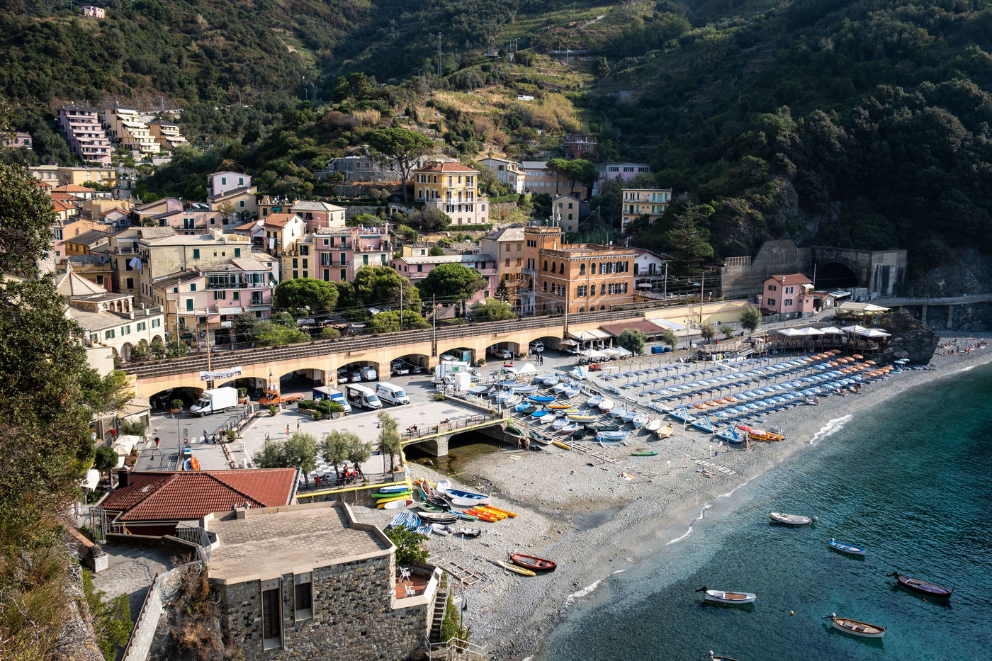 Voyage au Cinque Terre, un ensemble de 5 villages de pêcheurs construits à flan de falaise sur la riviera italienne, accessible principalement par train et bateau.