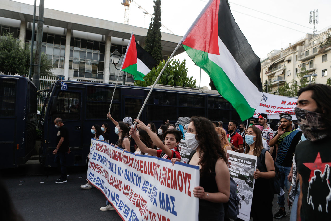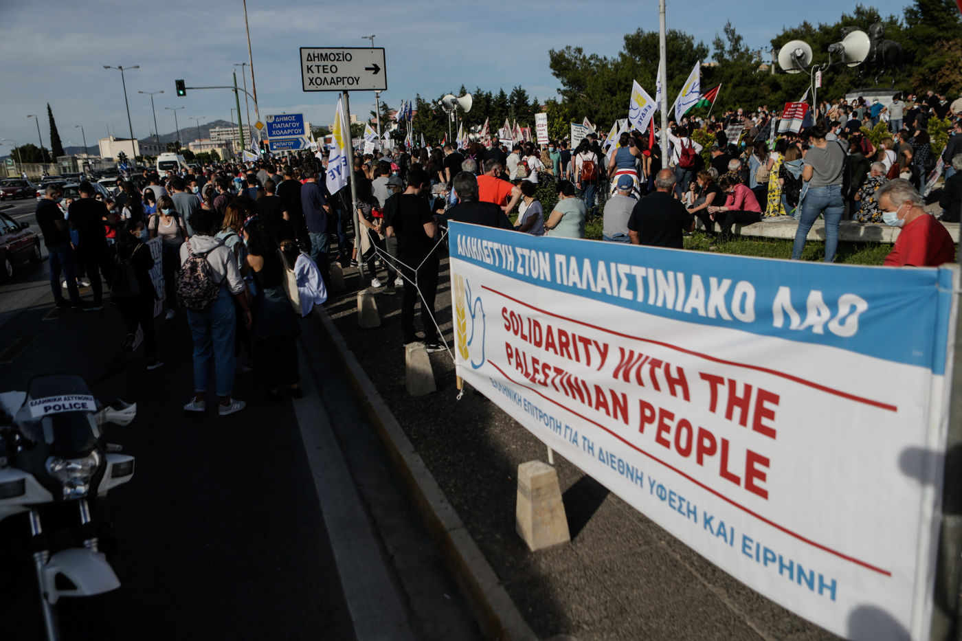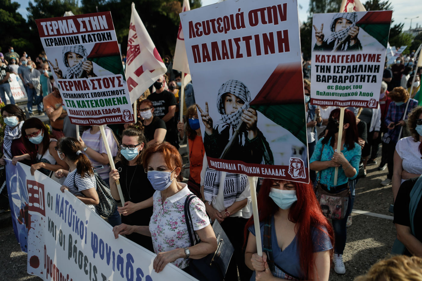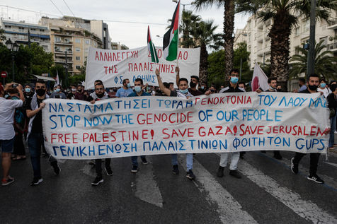 Manifestation par des organisations syndicales et des organisation de Palestinians habitant en Grèce contre les bombardements de Gaza et le massacre des Palestinian par Israel.