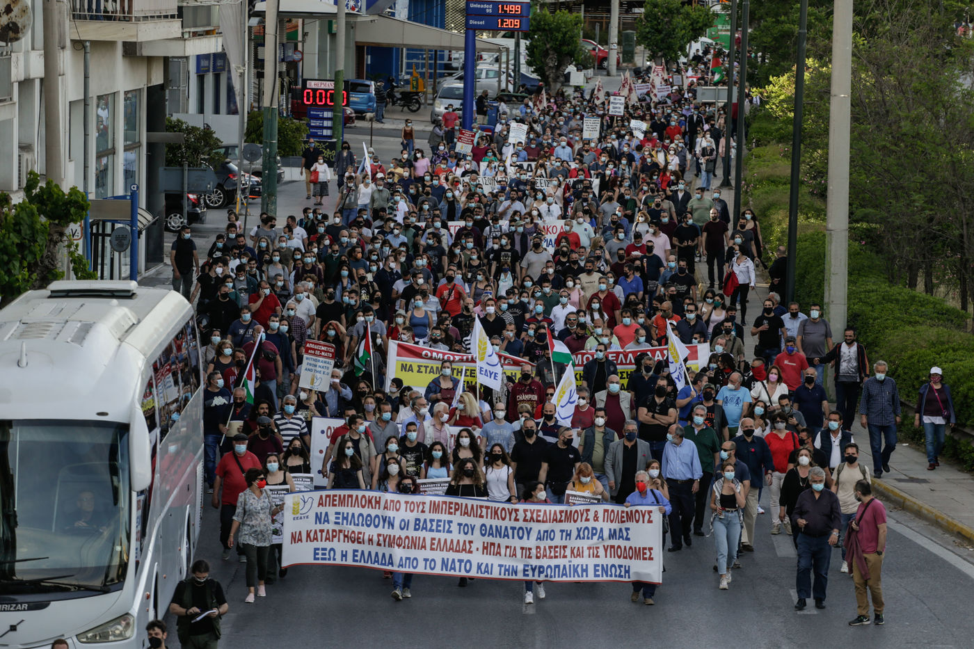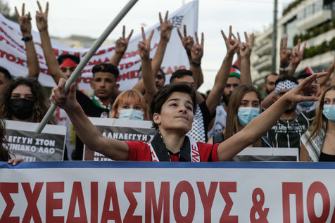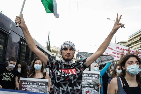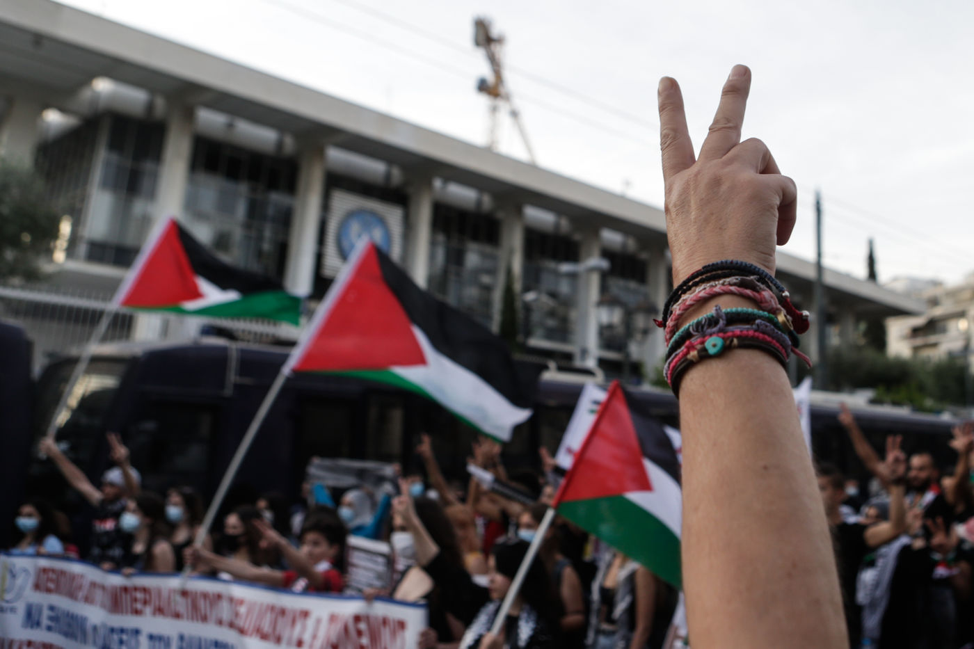 Manifestation par des organisations syndicales et des organisation de Palestinians habitant en Grèce contre les bombardements de Gaza et le massacre des Palestinian par Israel.