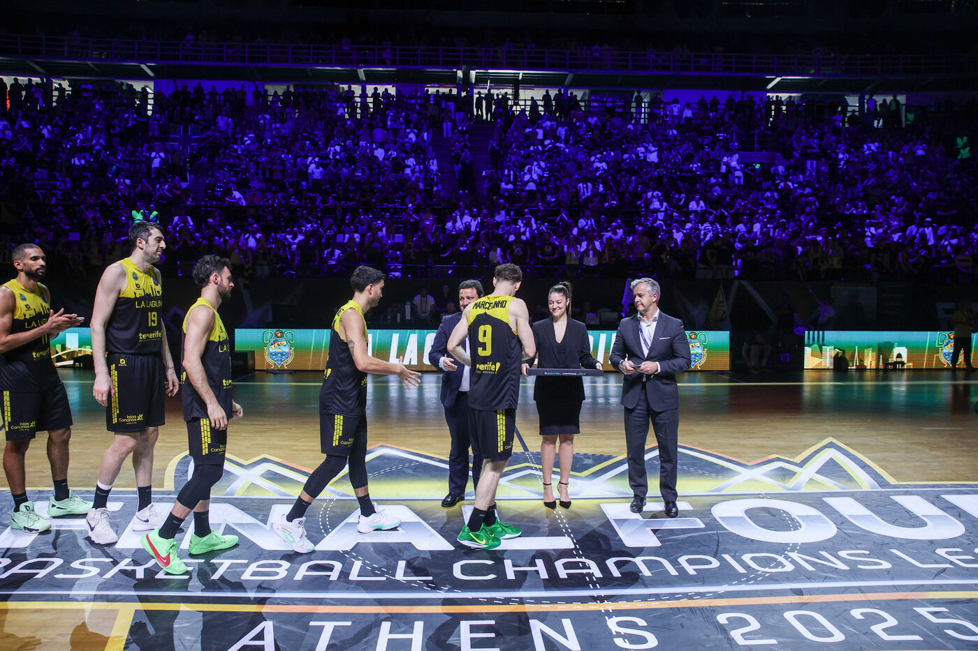 Match pour la 3e place entre l'AEK et Laguna Tenerife pour le Final Four de la Basketball Champions League, à Athenes, le 11 mai 2025. Le vainqueur du match était l'AEK, remportant la 3e place de la BCL 2025