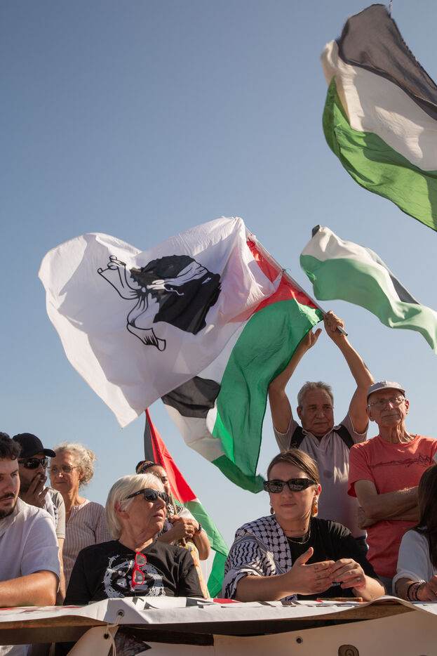 At the call of several associations and citizen movements, dozens of people gathered on Friday, September 12, 2025, in front of the citadel of Ajaccio to watch the crews depart to join the international flotilla bound for Gaza.