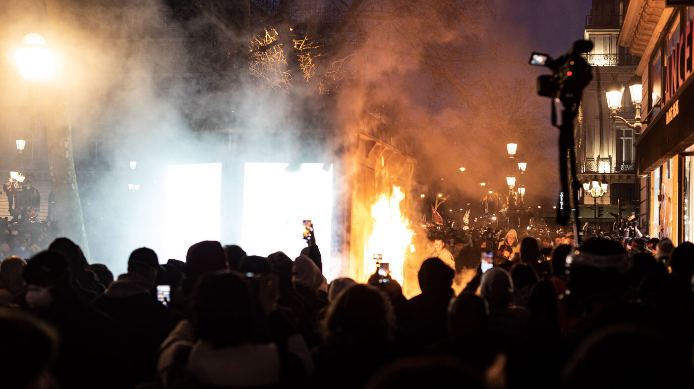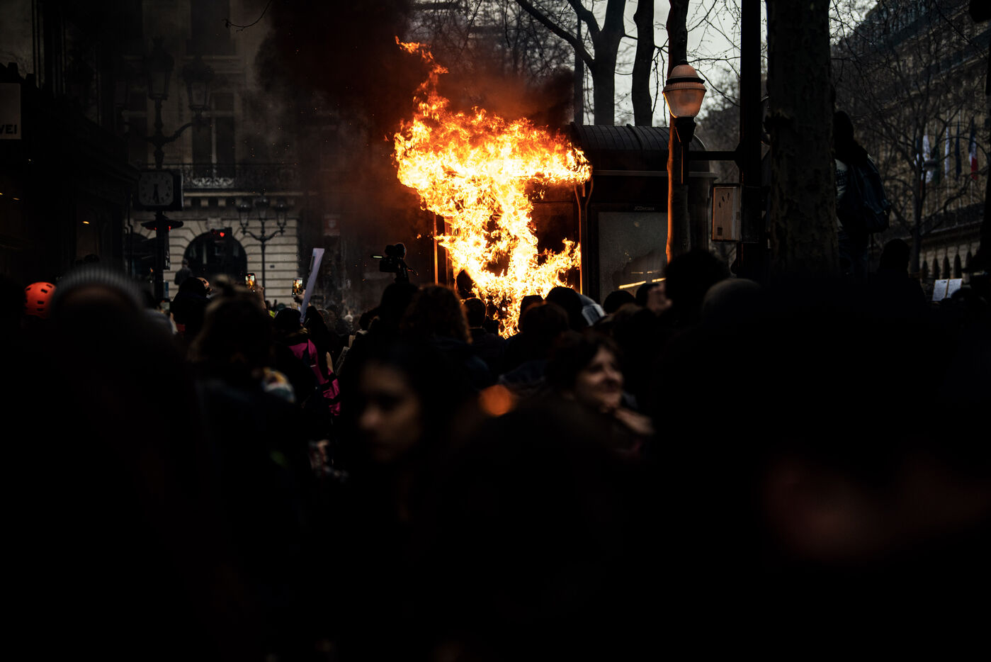 Alors que la manifestation s'est déroulée globalement dans le calme, la fin de cette journée de mobilisation du jeudi 23 mars a été émaillée de heurts, et notamment d'incendies et d'affrontements entre manifestants et forces de l'ordre au niveau de la place de l'Opéra, à Paris.