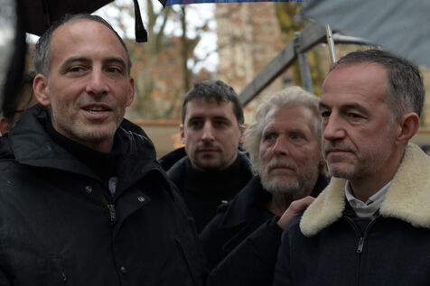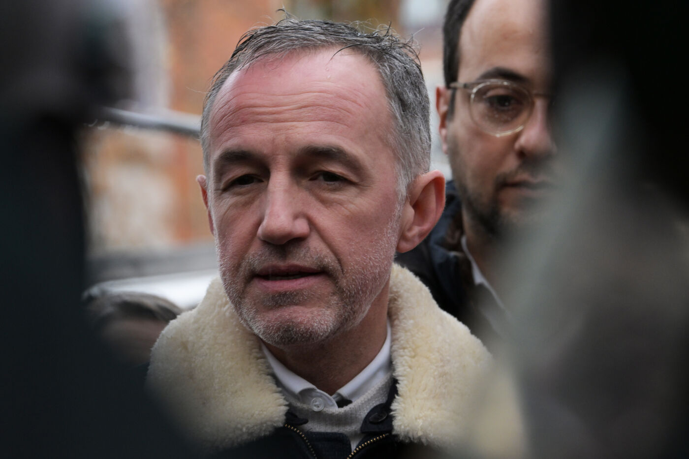 On Sunday, 21 December 2025, Emmanuel Grégoire, a candidate in the Paris municipal elections, visits the Place Monge market in the 5th arrondissement of the French capital. He is accompanied by Raphaël Glucksmann.