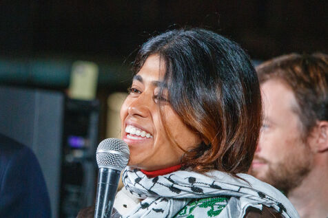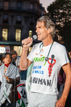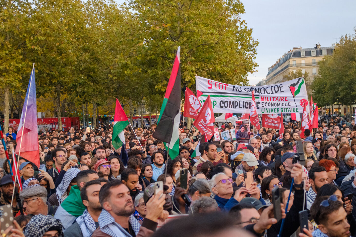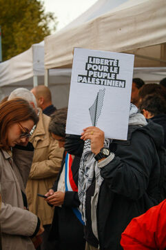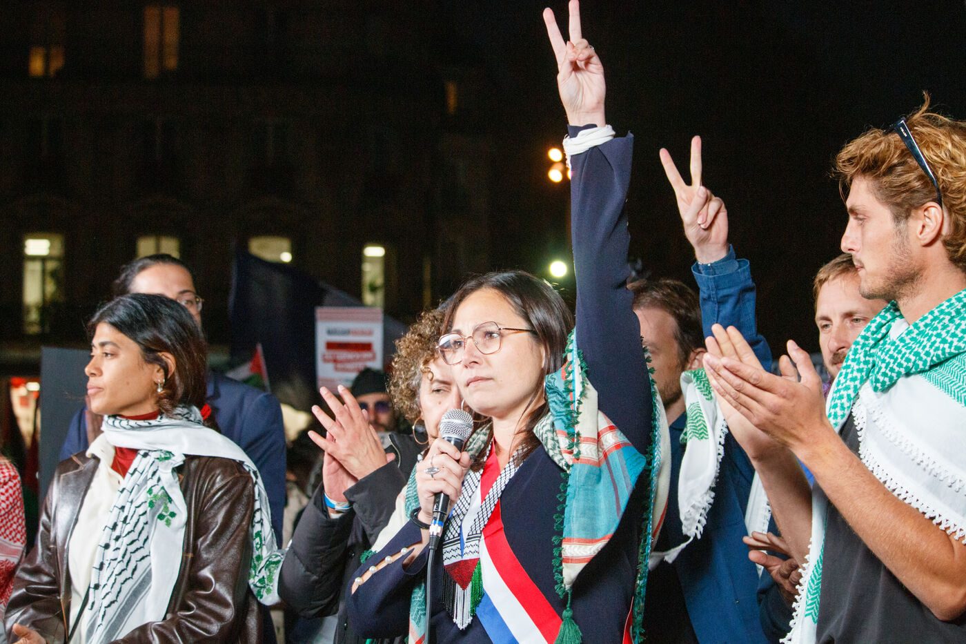 Manifestation pour fêter le retour des equipages des bateaux de la flottille humanitaire Global Sumud - Paris - 8 Octobre 2025