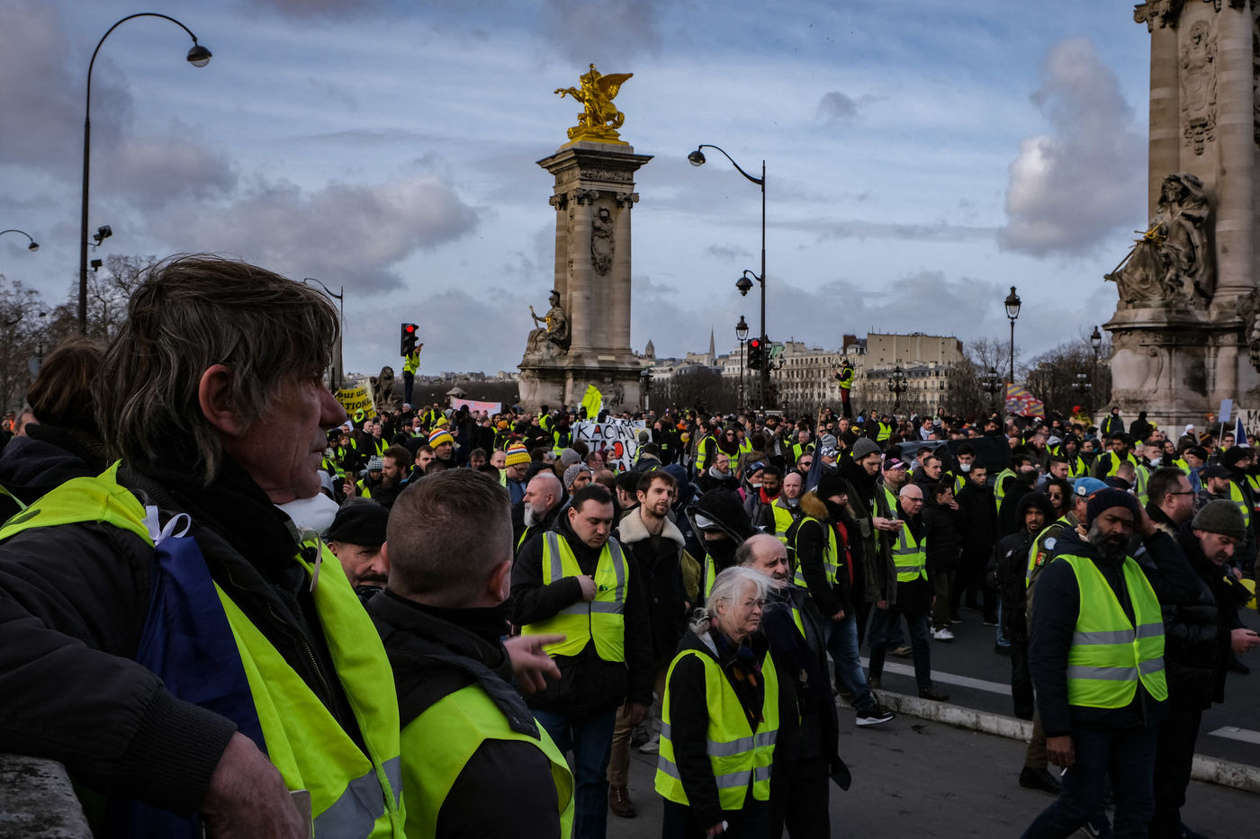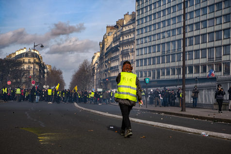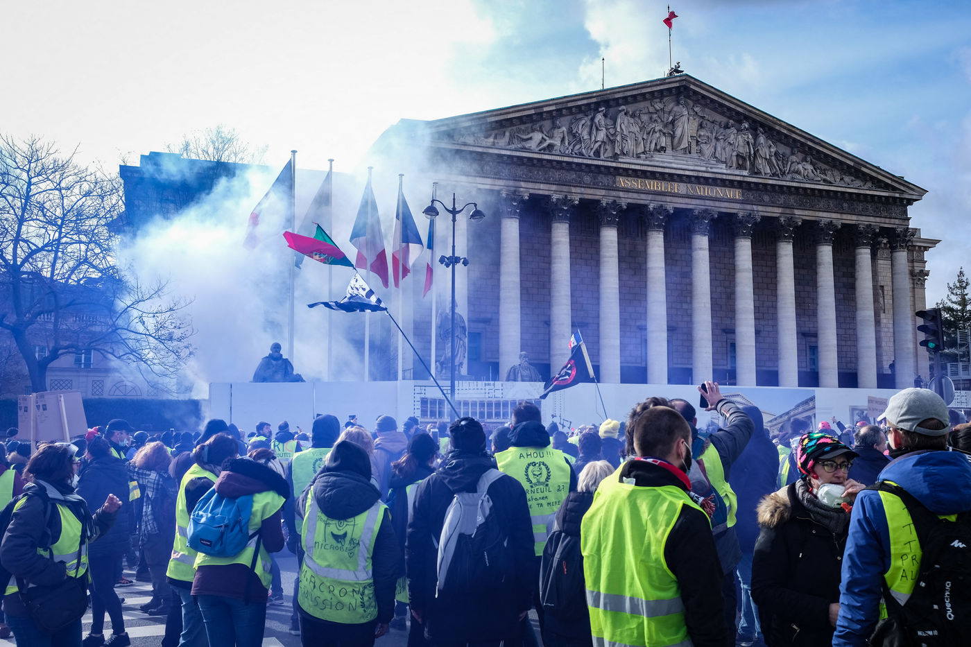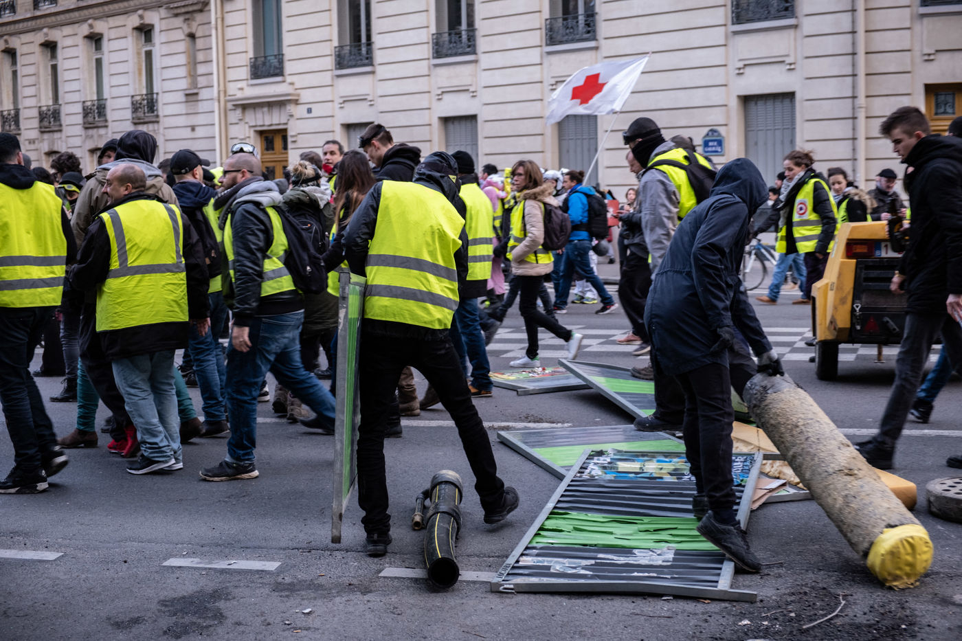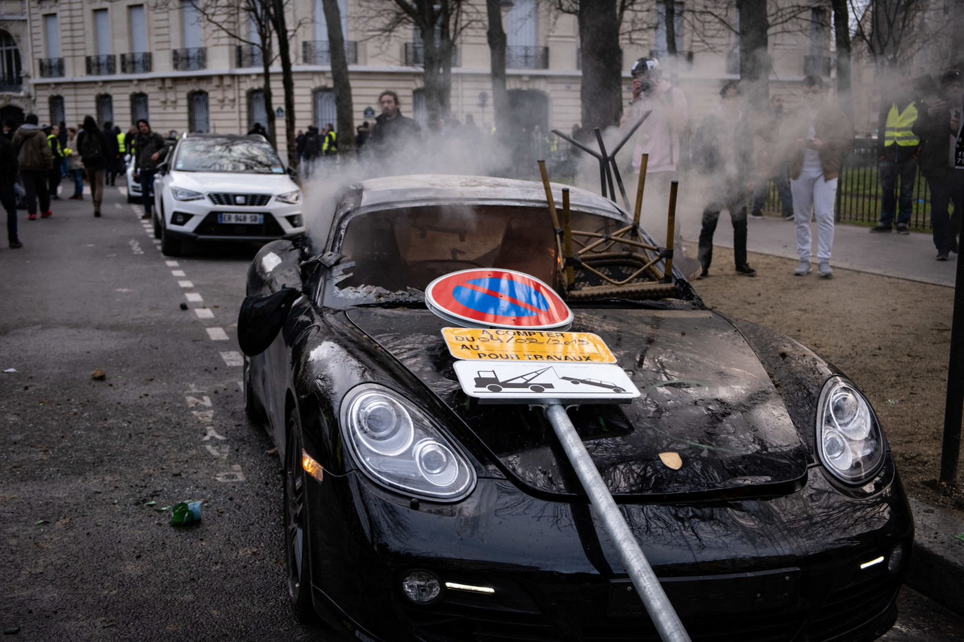 Treizième samedi de mobilisation des gilets jaunes dans la capitale. Le parcours de la manifestation, déposé en préfecture, comprenait des passages devant les lieux de pouvoir de la capitale. C'est devant l'Assemblée nationale que les premiers affrontements violents éclatent. Un manifestant perd quatre doigts lors de l'explosion de ce qui semble être une grenade utilisée par les forces de l'ordre. Après sa prise en charge par des équipes de soin, la progression du cortège se poursuit, marquée par des destructions de matériels urbains, de véhicules, dont certains de l'opération sentinelle, et le saccage de banques. Arrivée au Champs de mars qui devait êre la fin du parcours, les gilets jaunes prennent le chemin du trocadéro pour continuer à avancer dans la capitale avant d'être dispersés par les forces de l'ordre.